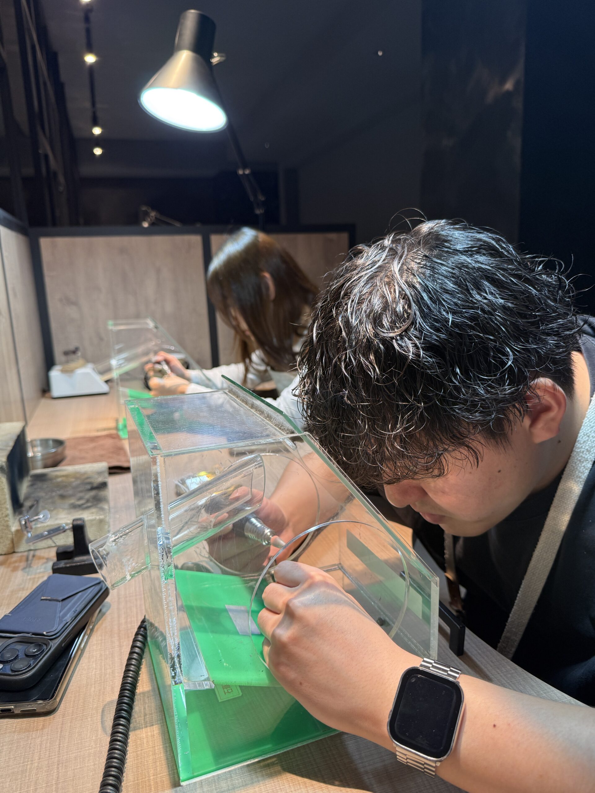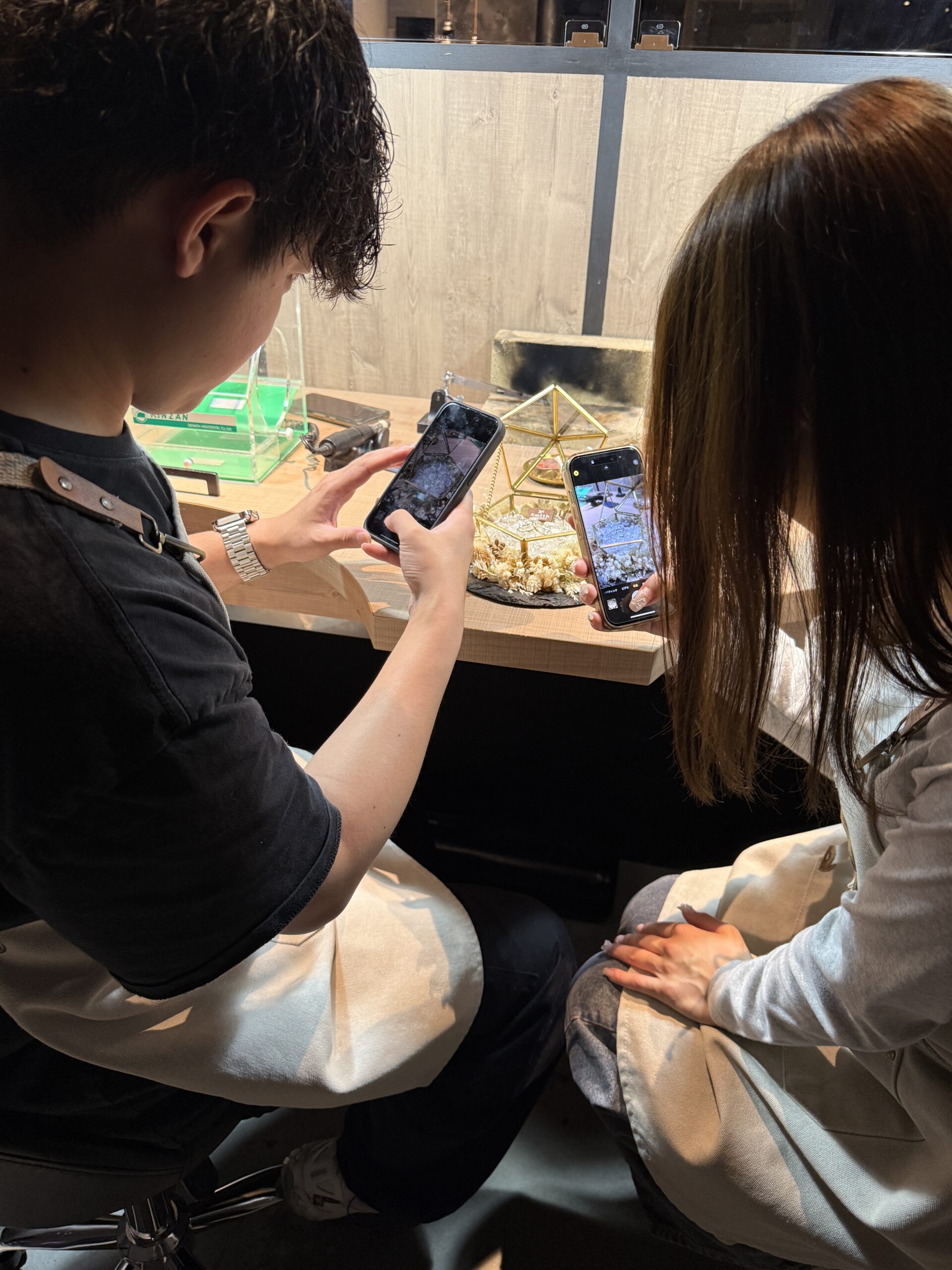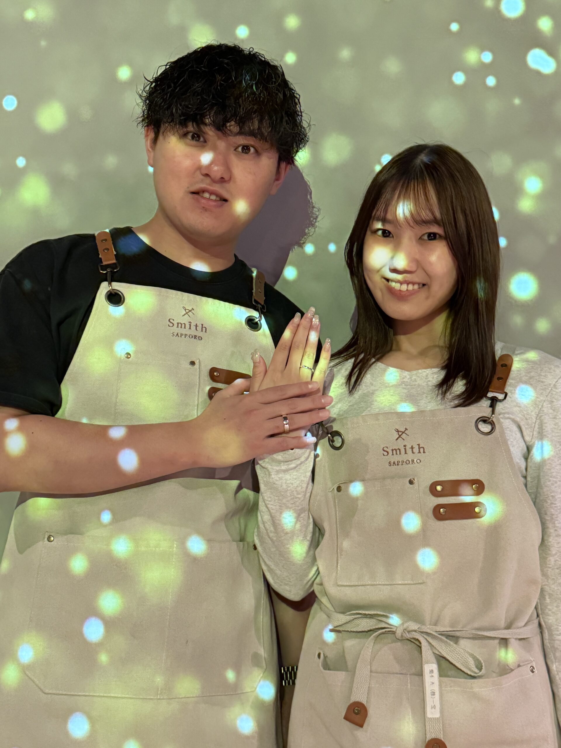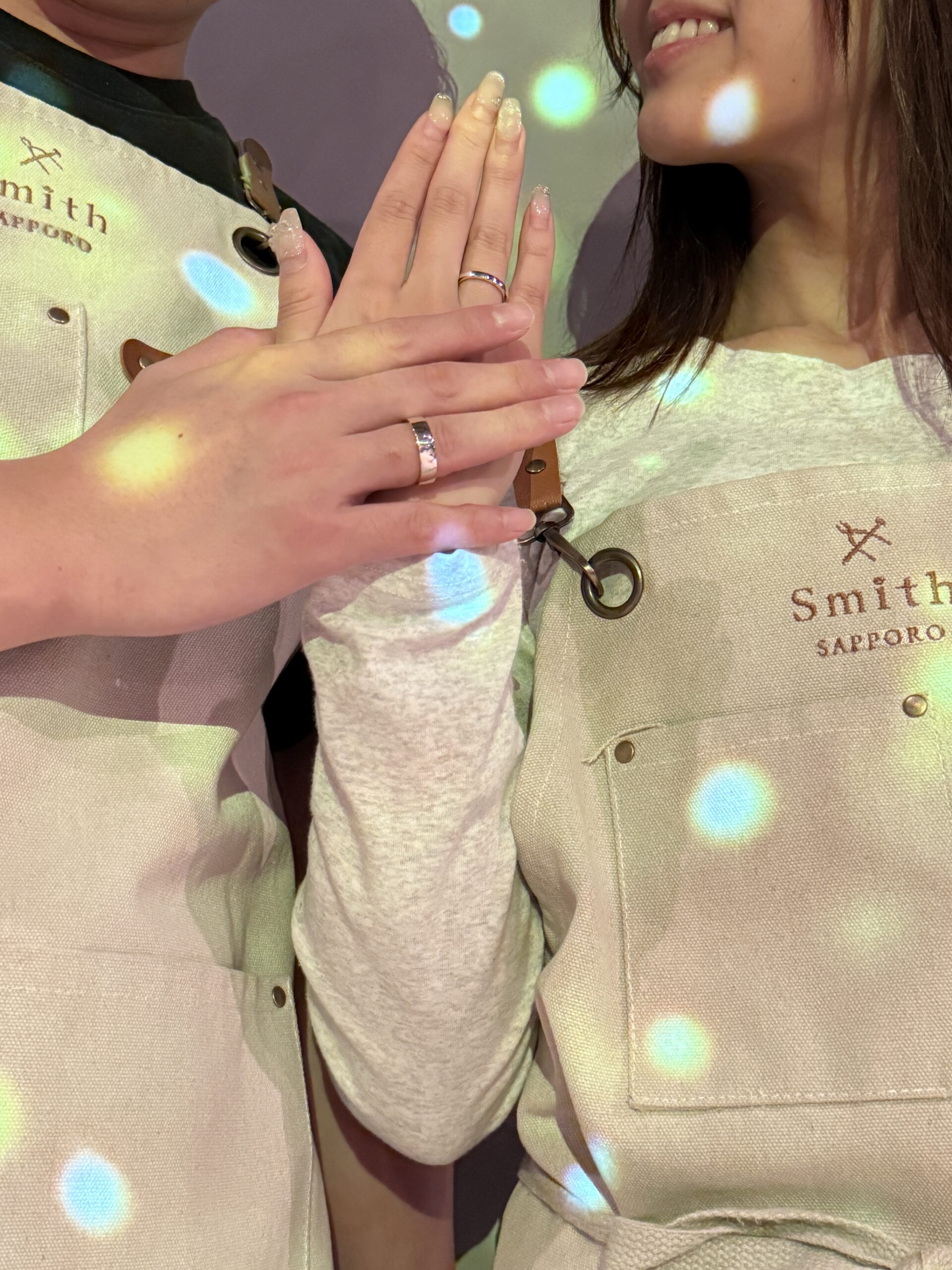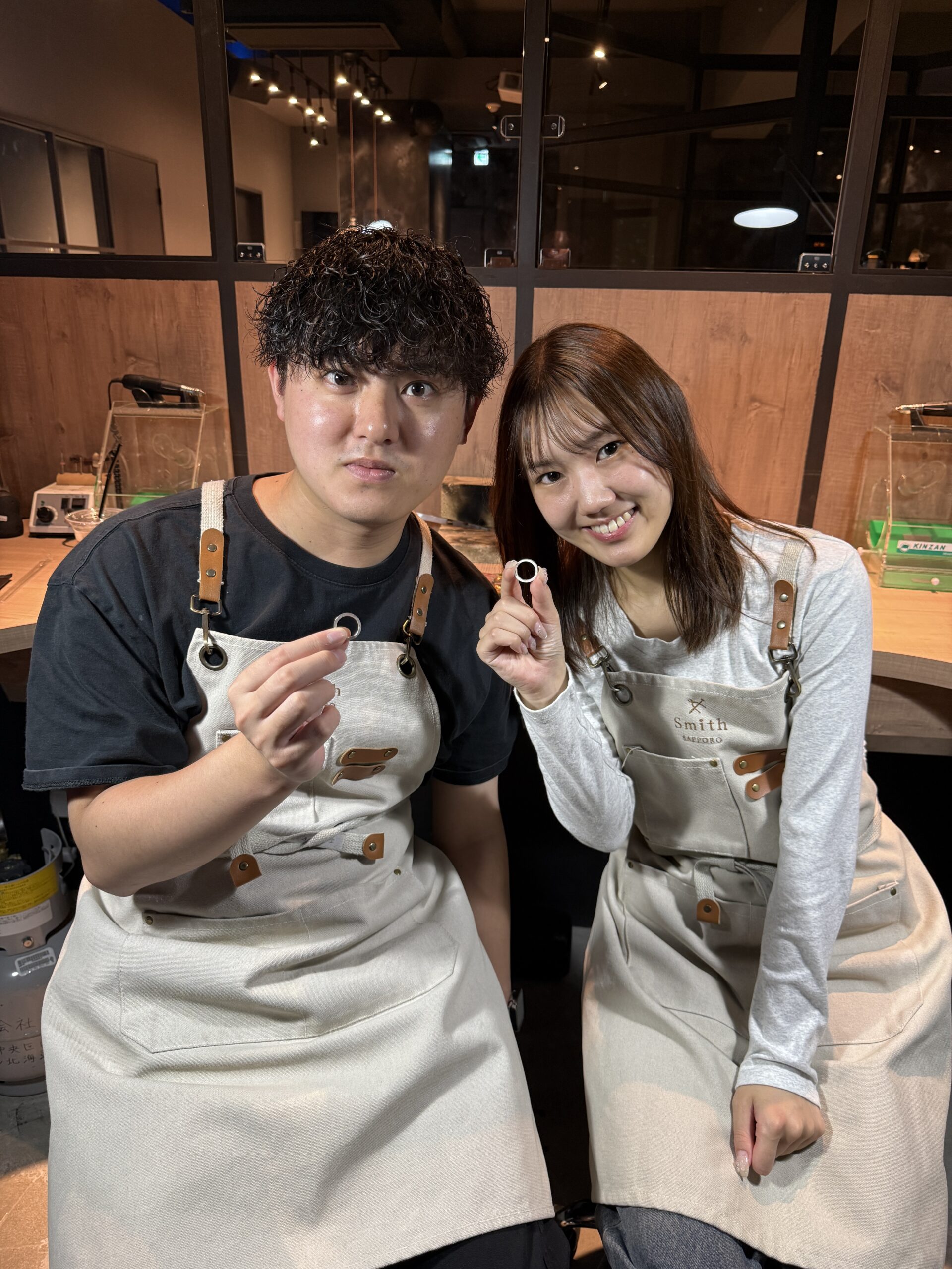 お互いの指輪を真剣に作り合うご様子もとても微笑ましく、仲睦まじい姿に心温まるひとときでした。また、楽しそうにたくさんお写真を撮ってくださったことも、とても嬉しく感じております。
