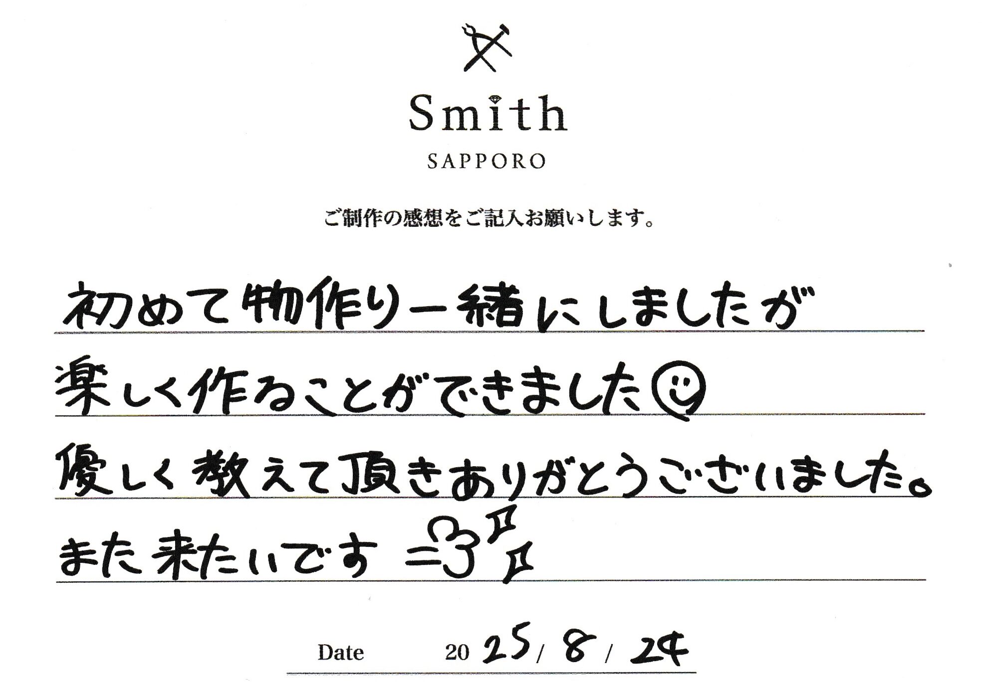 初めて物作りを一緒にしましたが楽しく作ることができました。