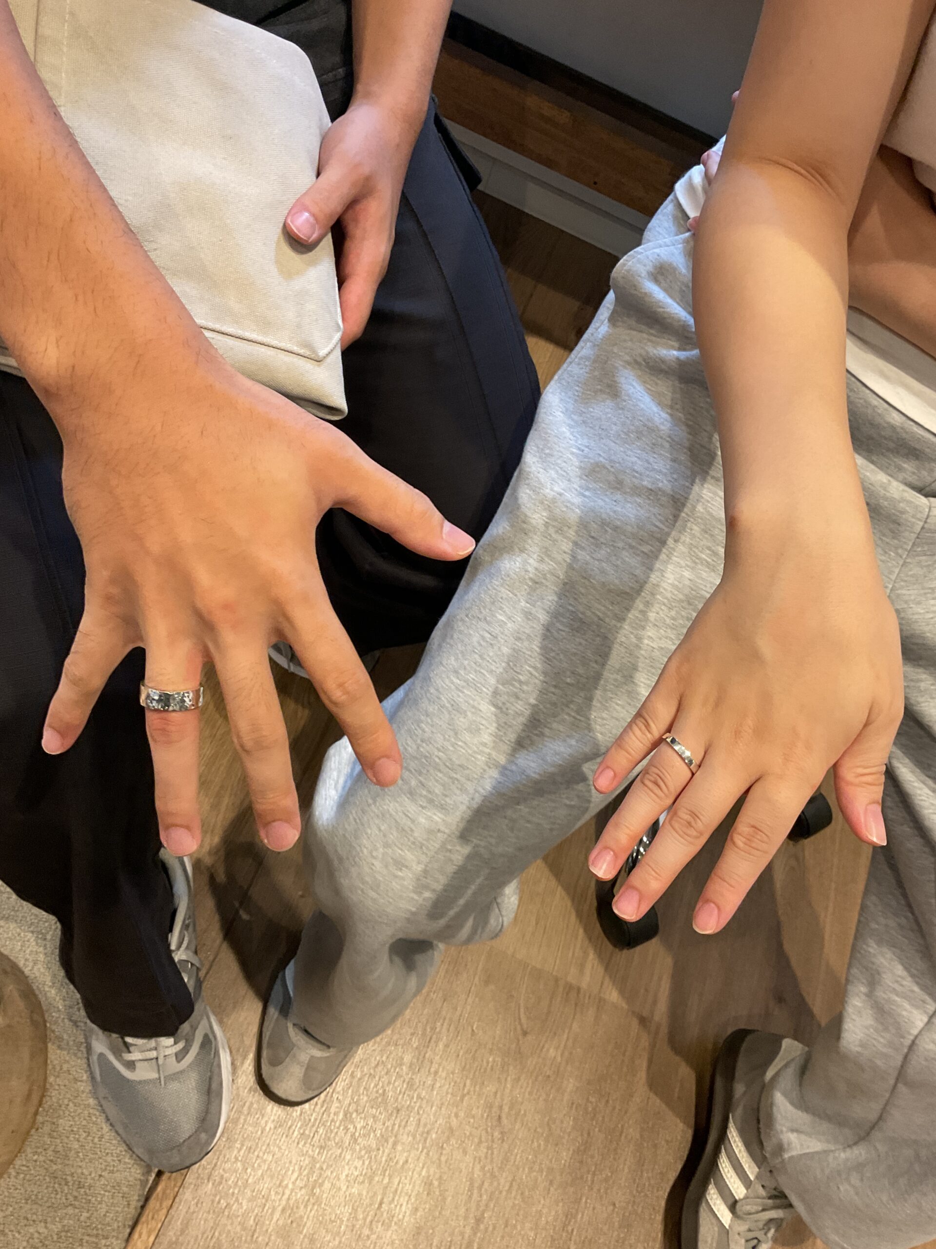 基本の形は3mmと7mmの平打ちリングをお選びいただきました。