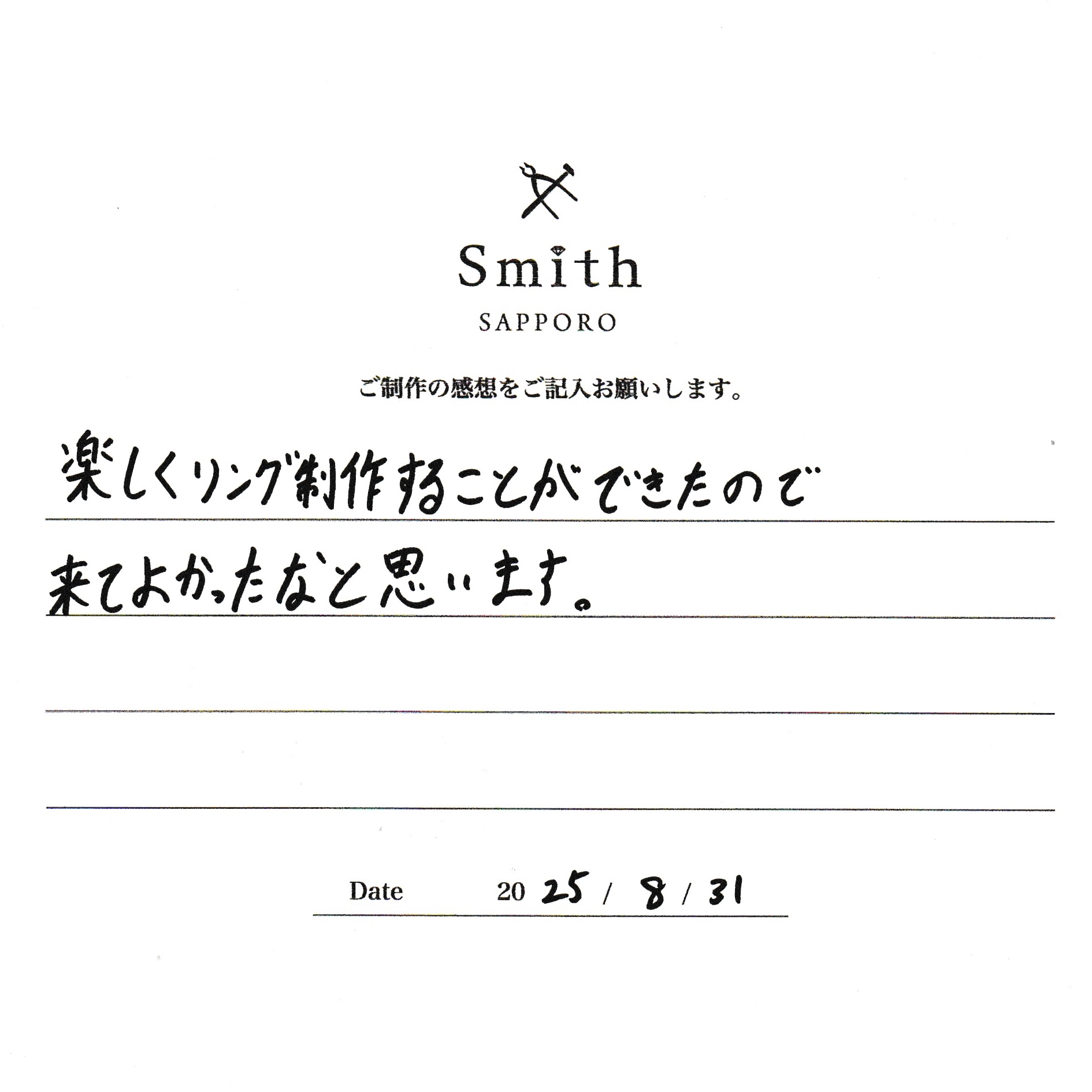 楽しくリング制作することができたので来てよかったなと思います。