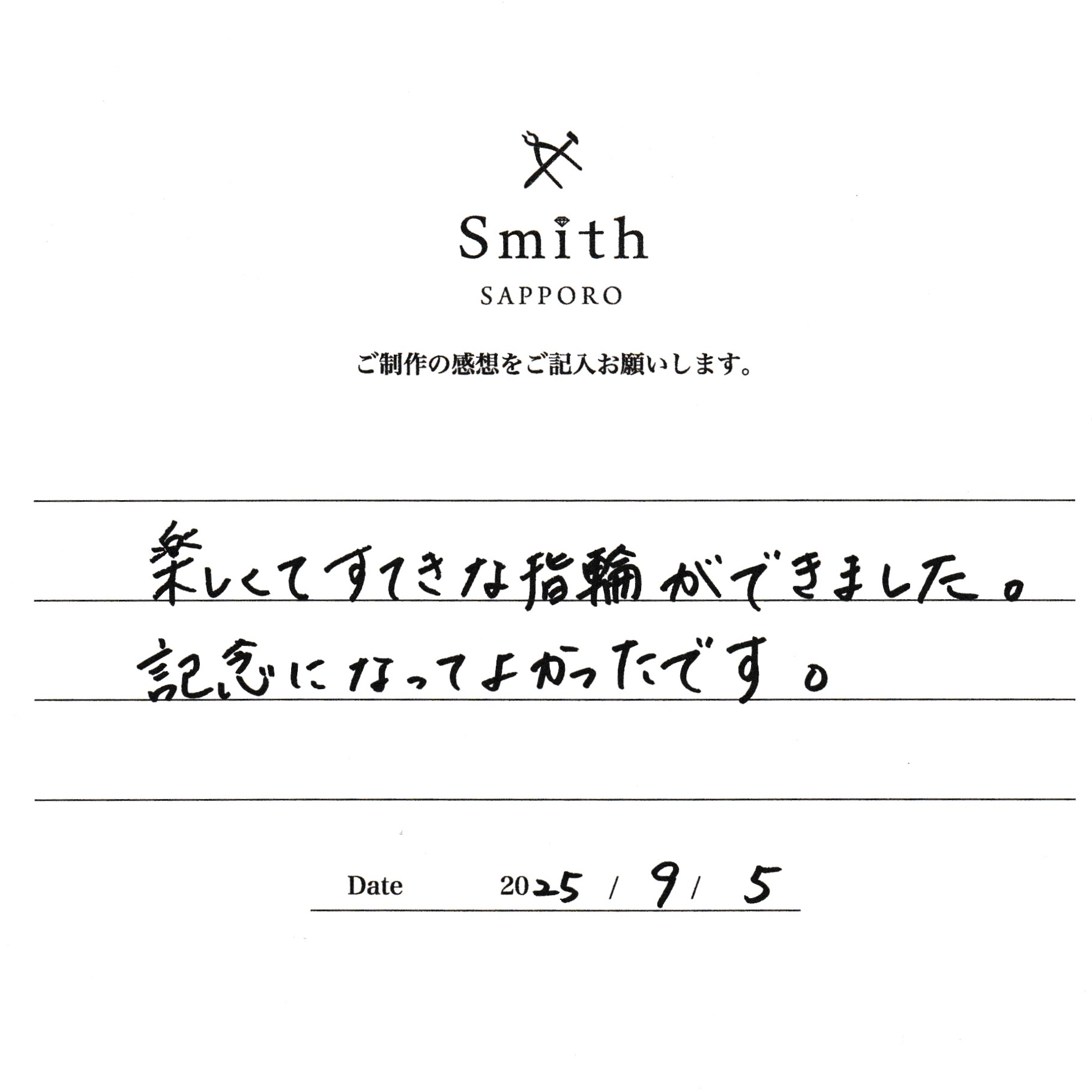 この度は、工房Smith京王プラザホテル札幌店で手作りペアリングのご制作誠にありがとうございました。
