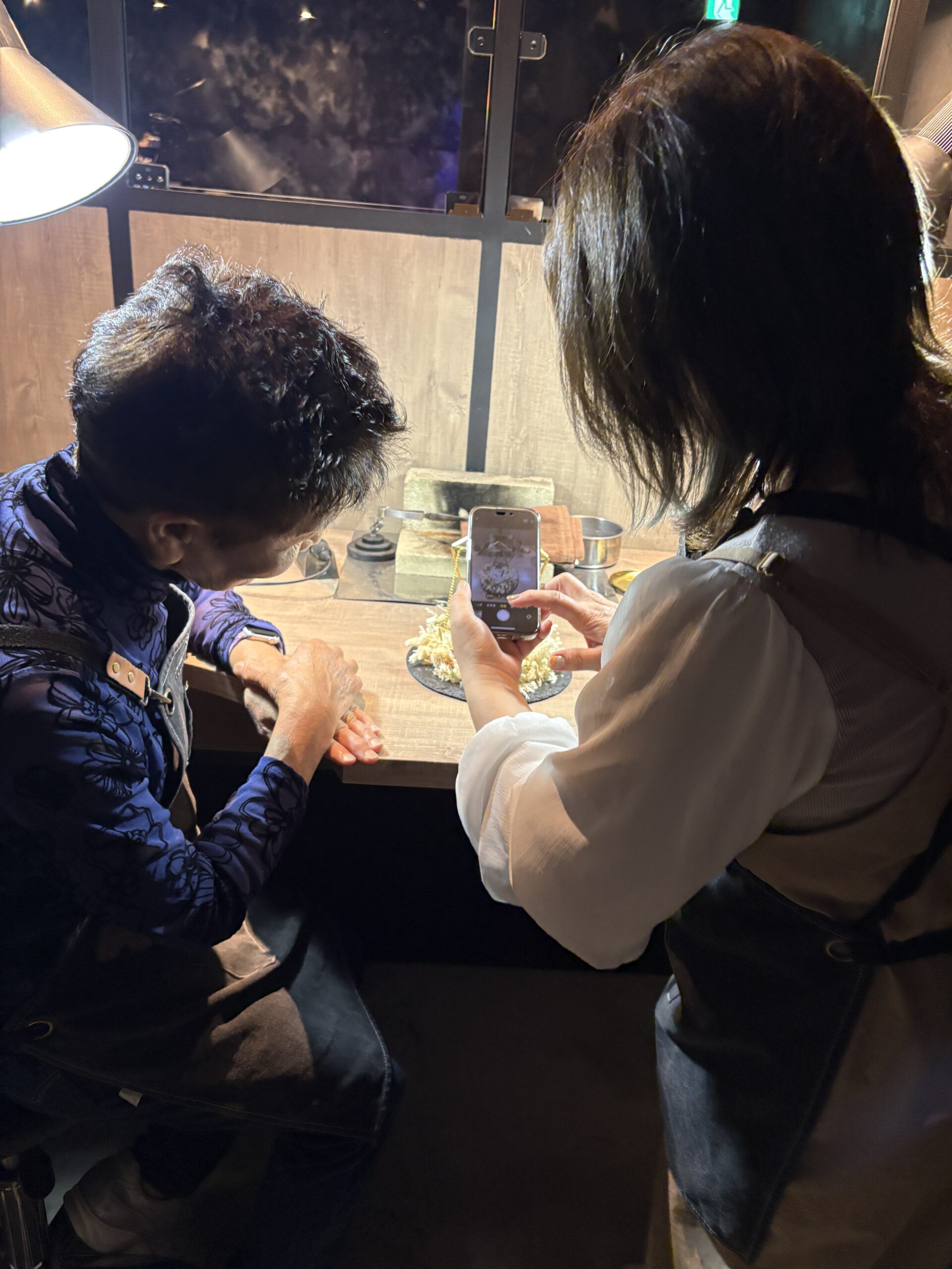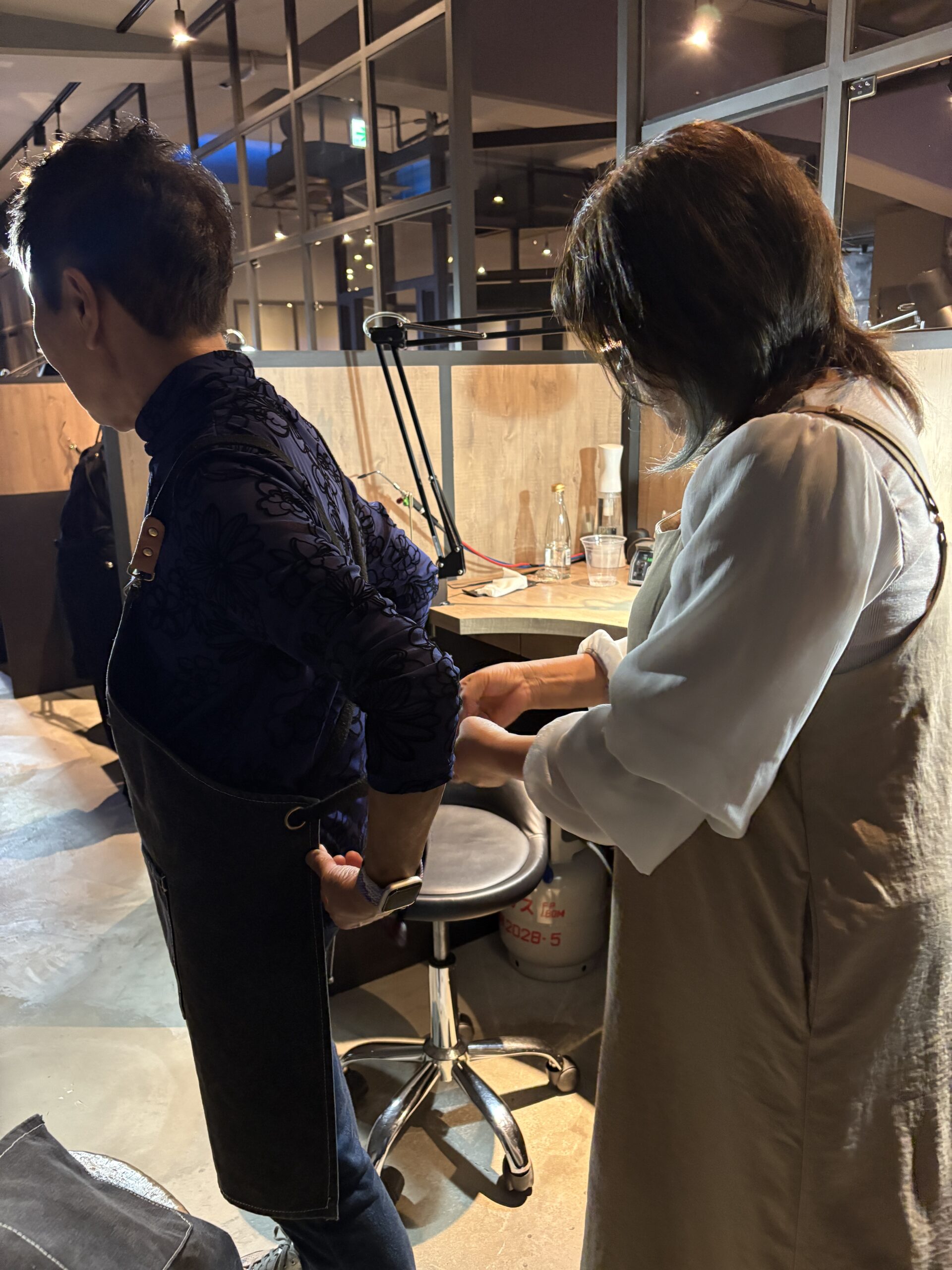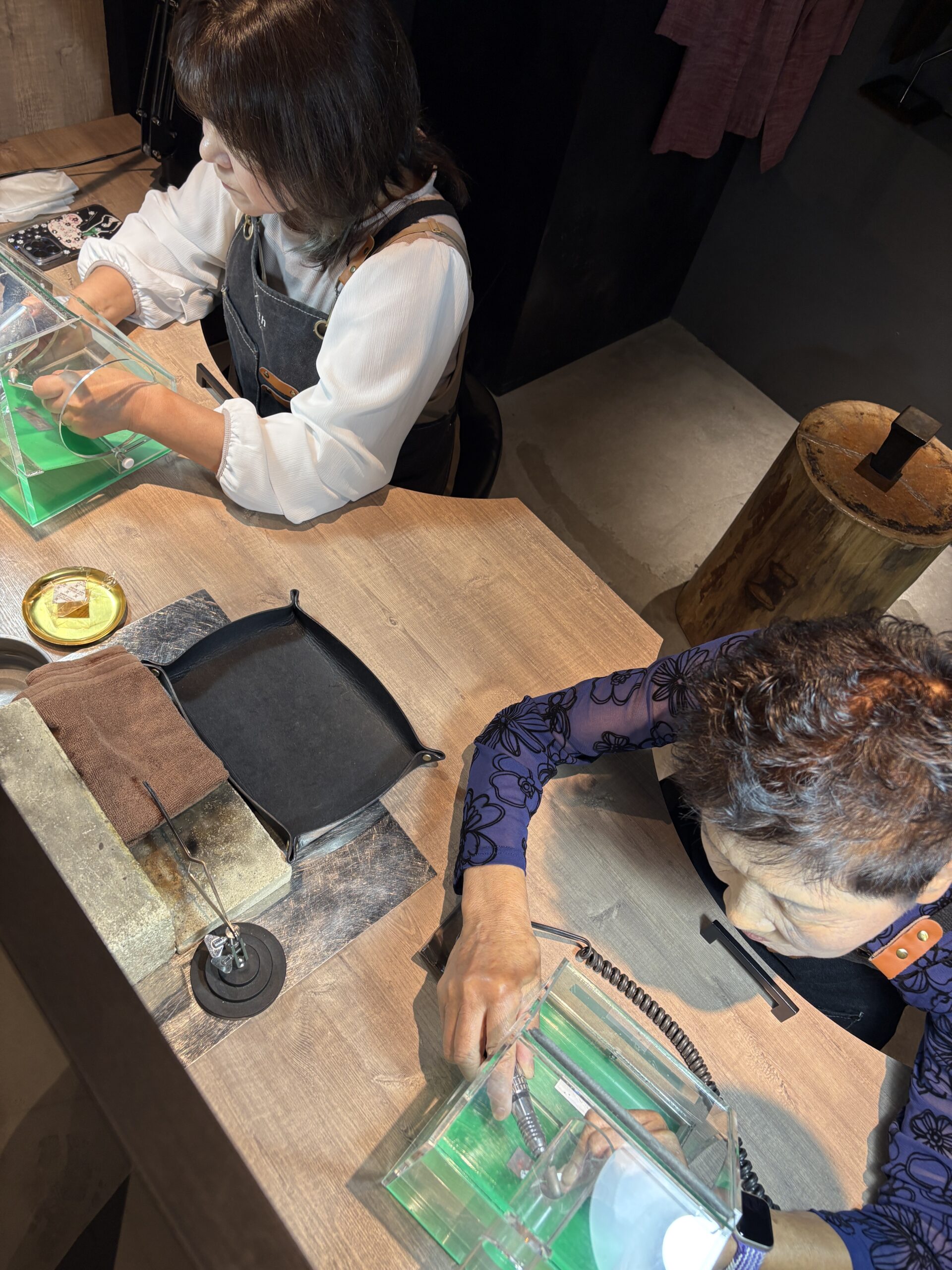 親子で仲良くネックレス制作を楽しまれる姿がとても印象的でした。何事にも挑戦するお母様と、それを温かく見守る娘様の素敵な関係に心が和みました。