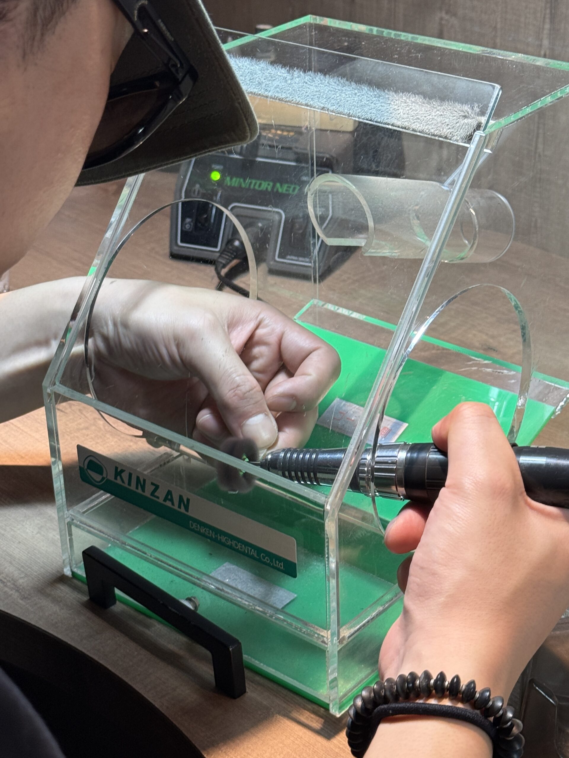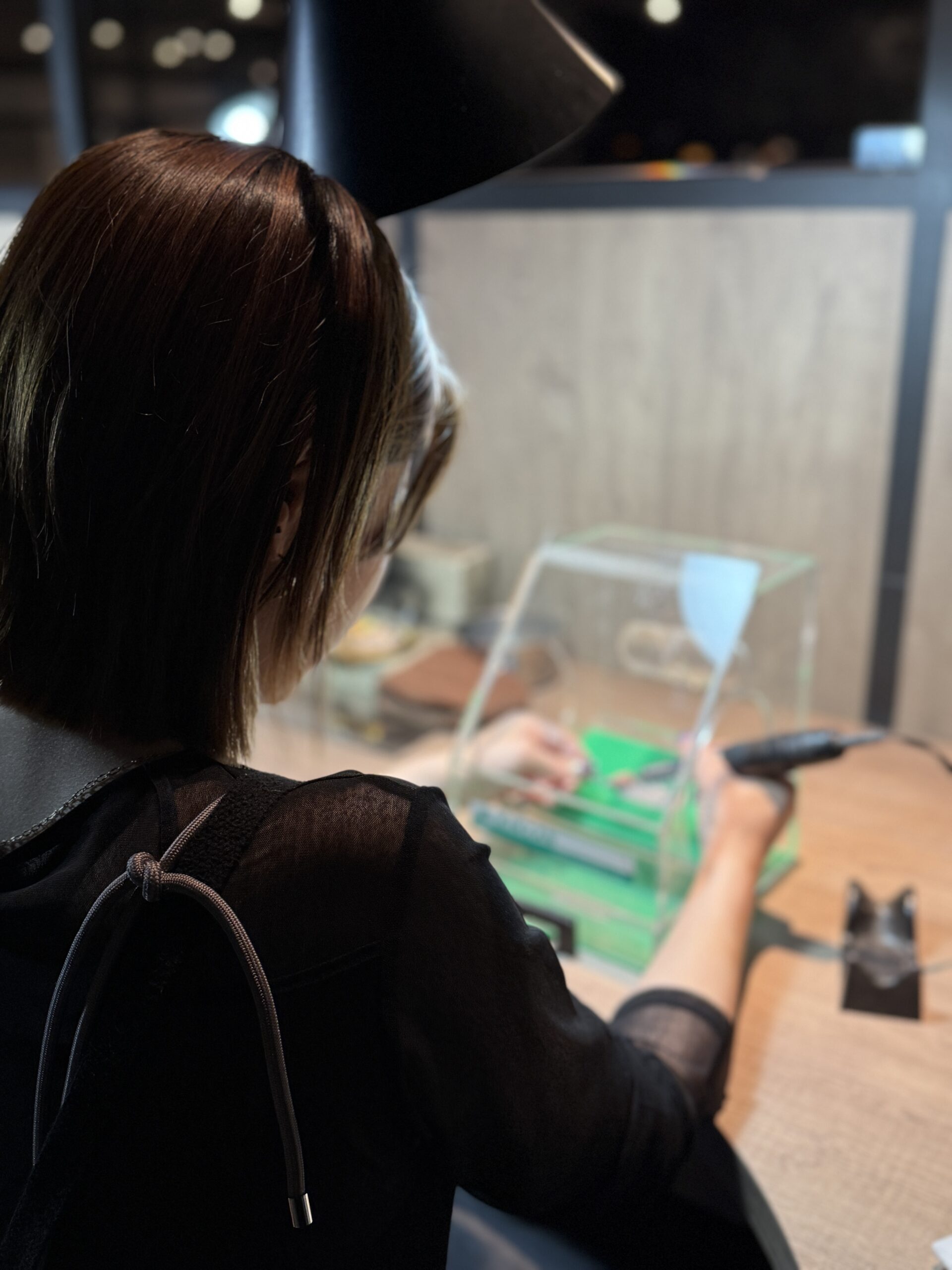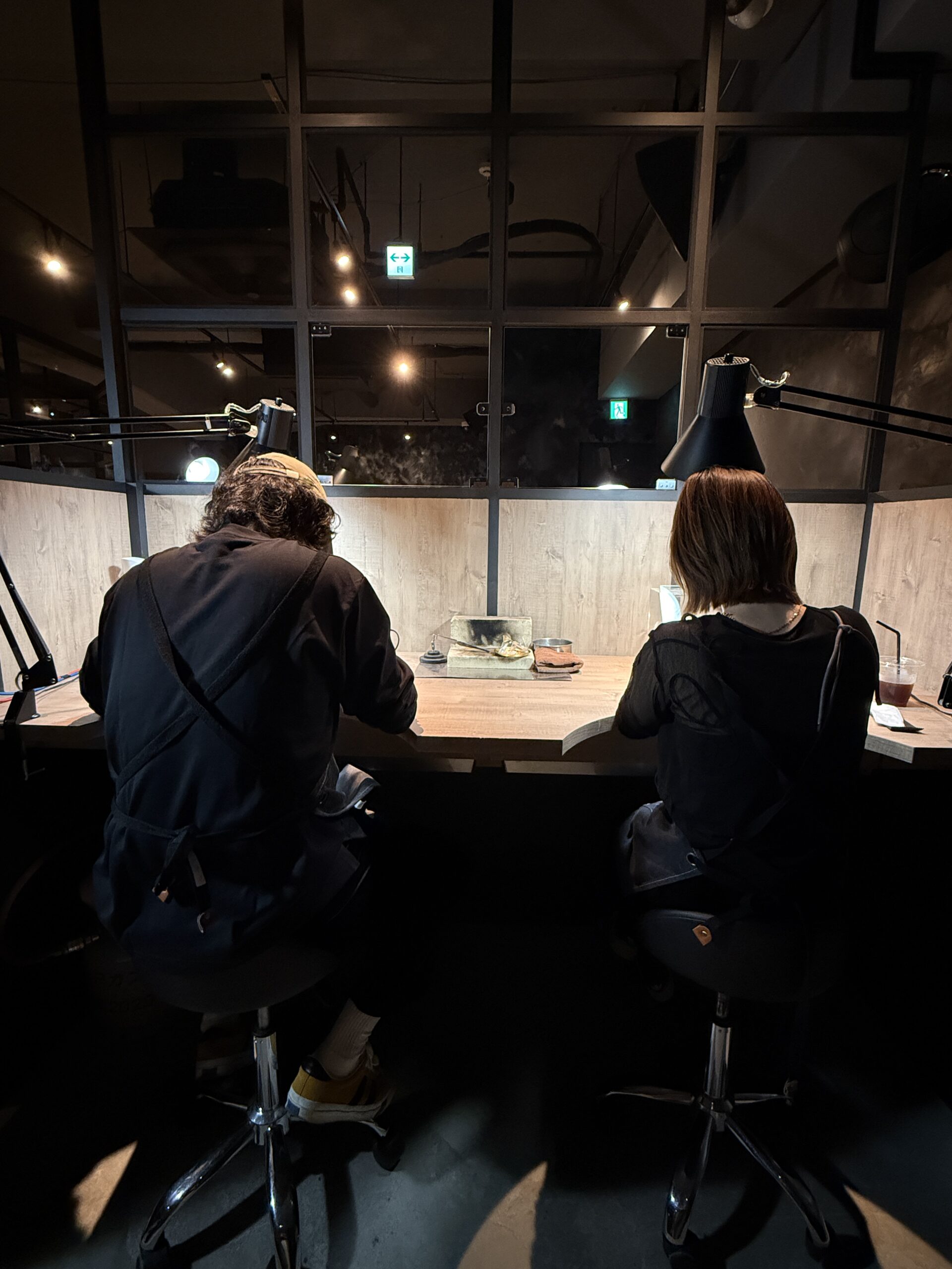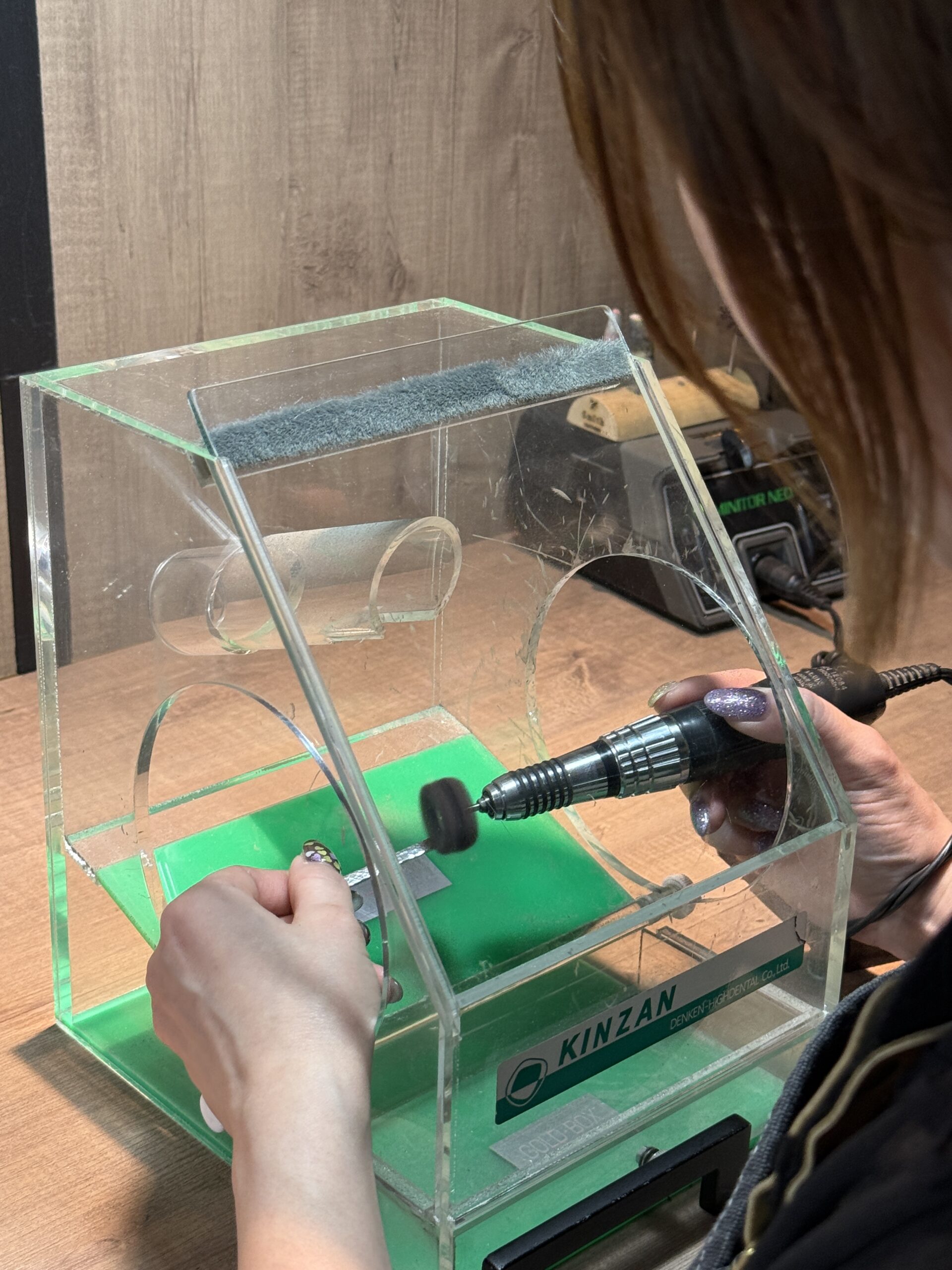 お揃いのデザインでお互いにネックレスを作り合う姿がとても微笑ましく、楽しそうに制作されている様子が印象的でした。