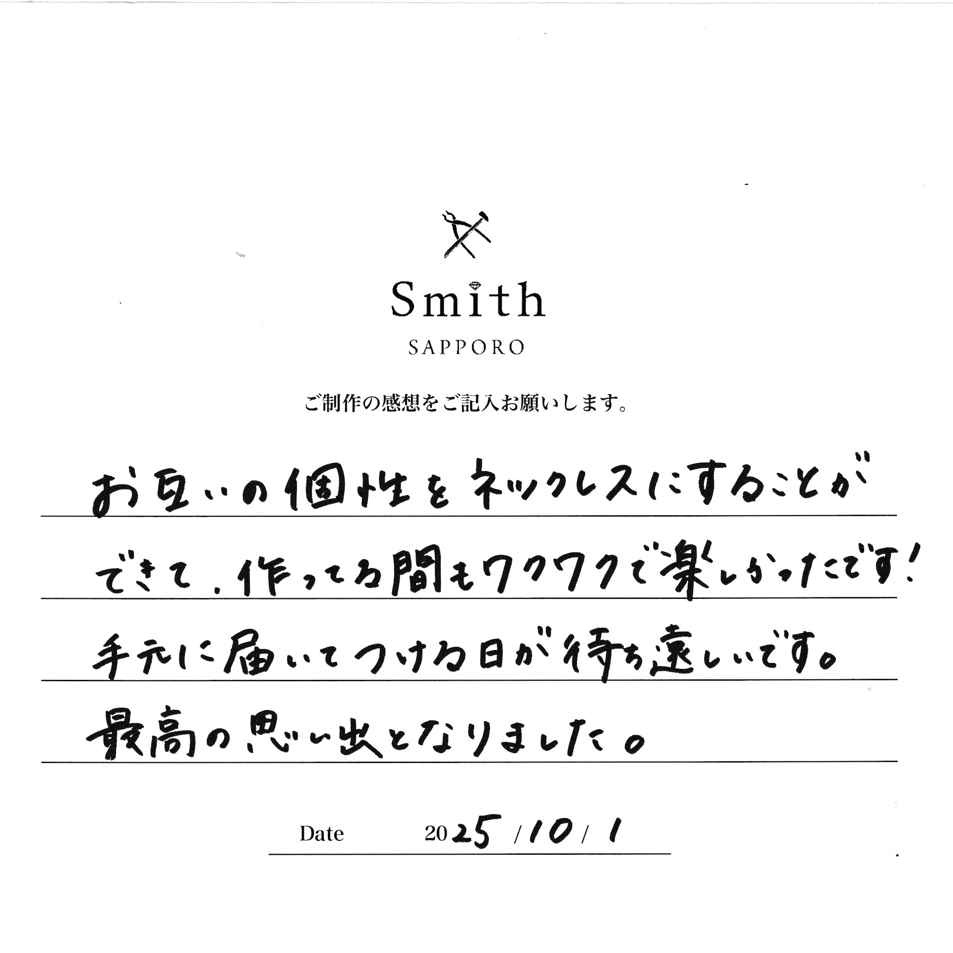 お互いの個性をネックレスにすることができて、作っている間もワクワクで楽しかったです!
