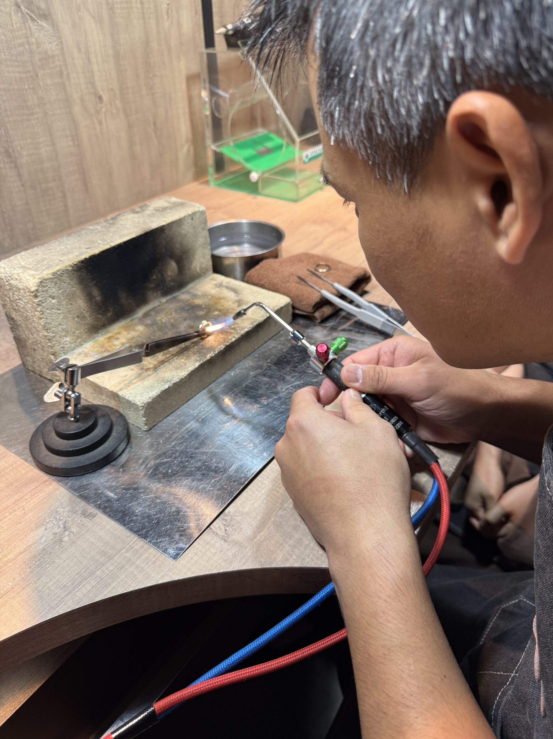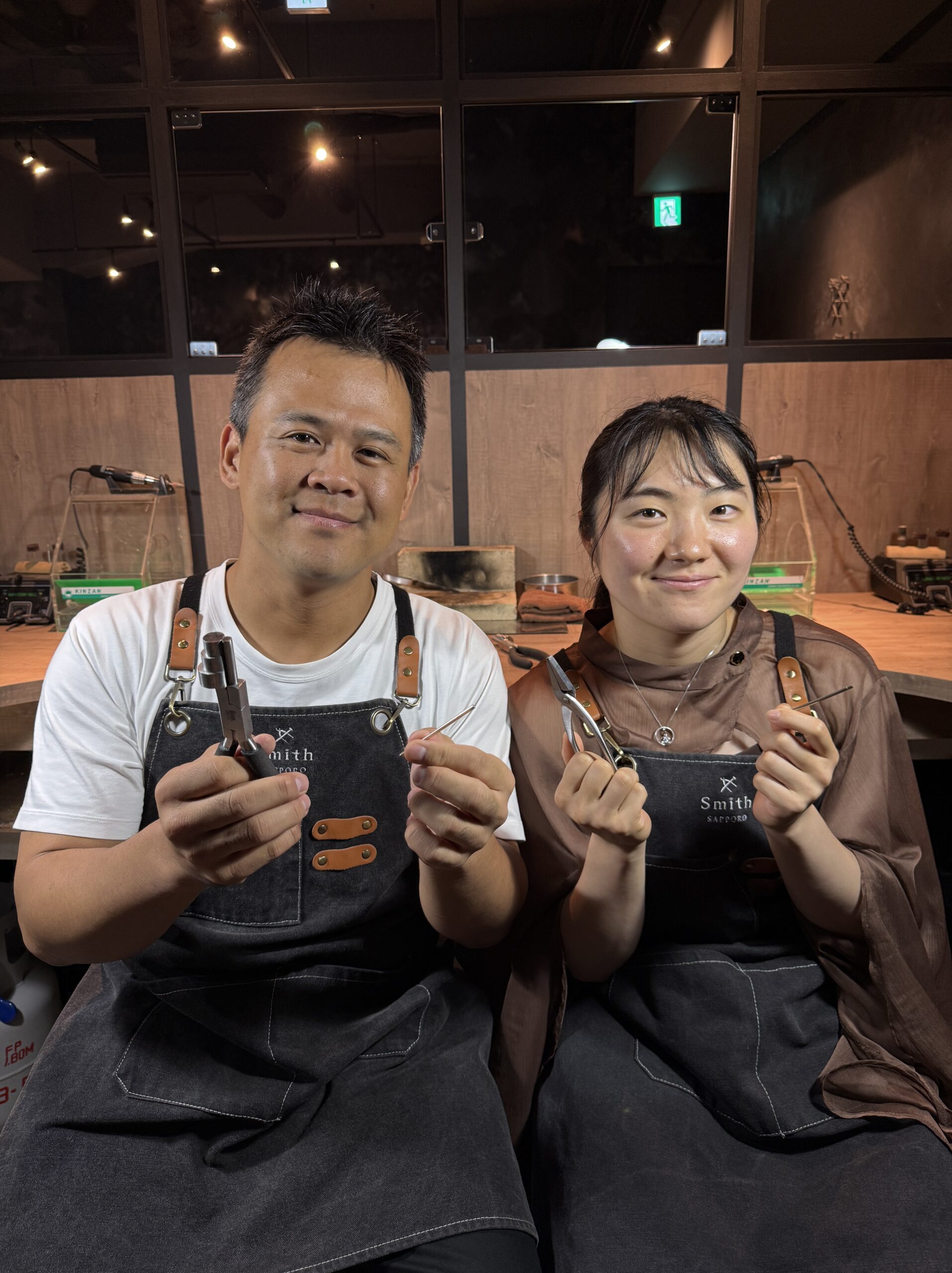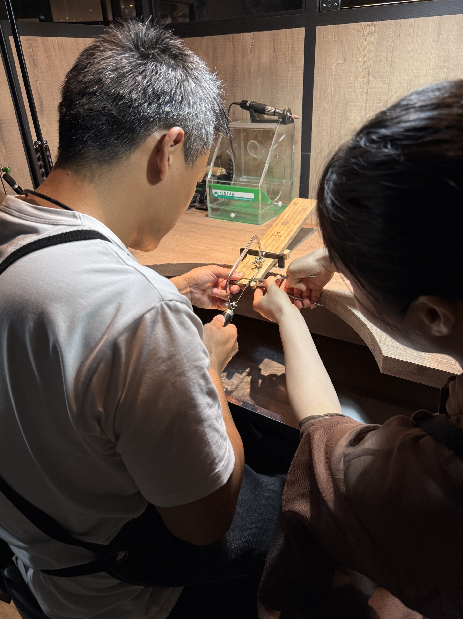ご主人様はさすがの器用さで工具を使いこなし、奥様は意外にも力強く作業を進めていらっしゃる姿がとても印象的でした。お互いを想いながら丁寧に指輪を作り合うお二人の姿に、スタッフ一同も温かい気持ちで見守らせていただきました。