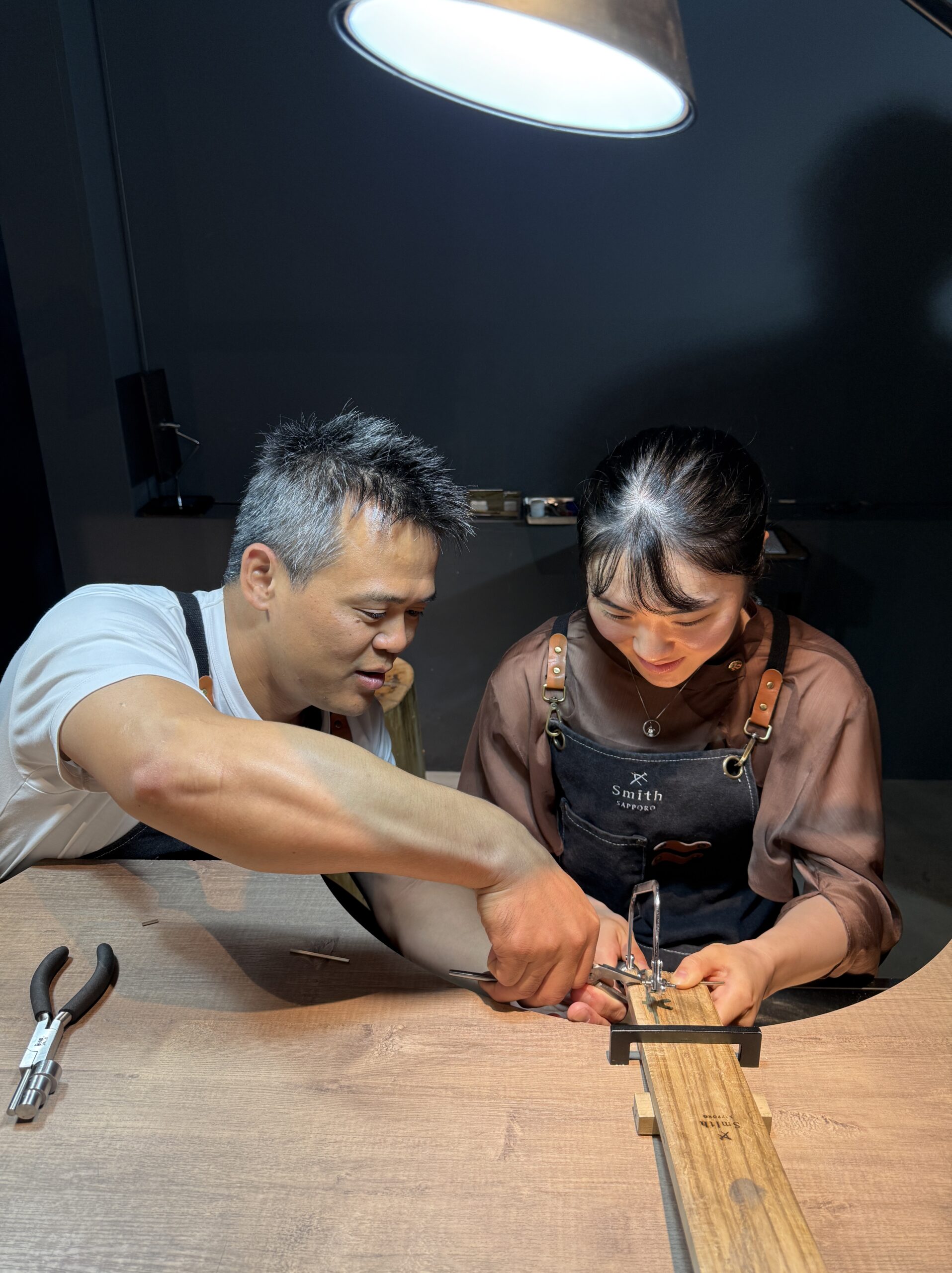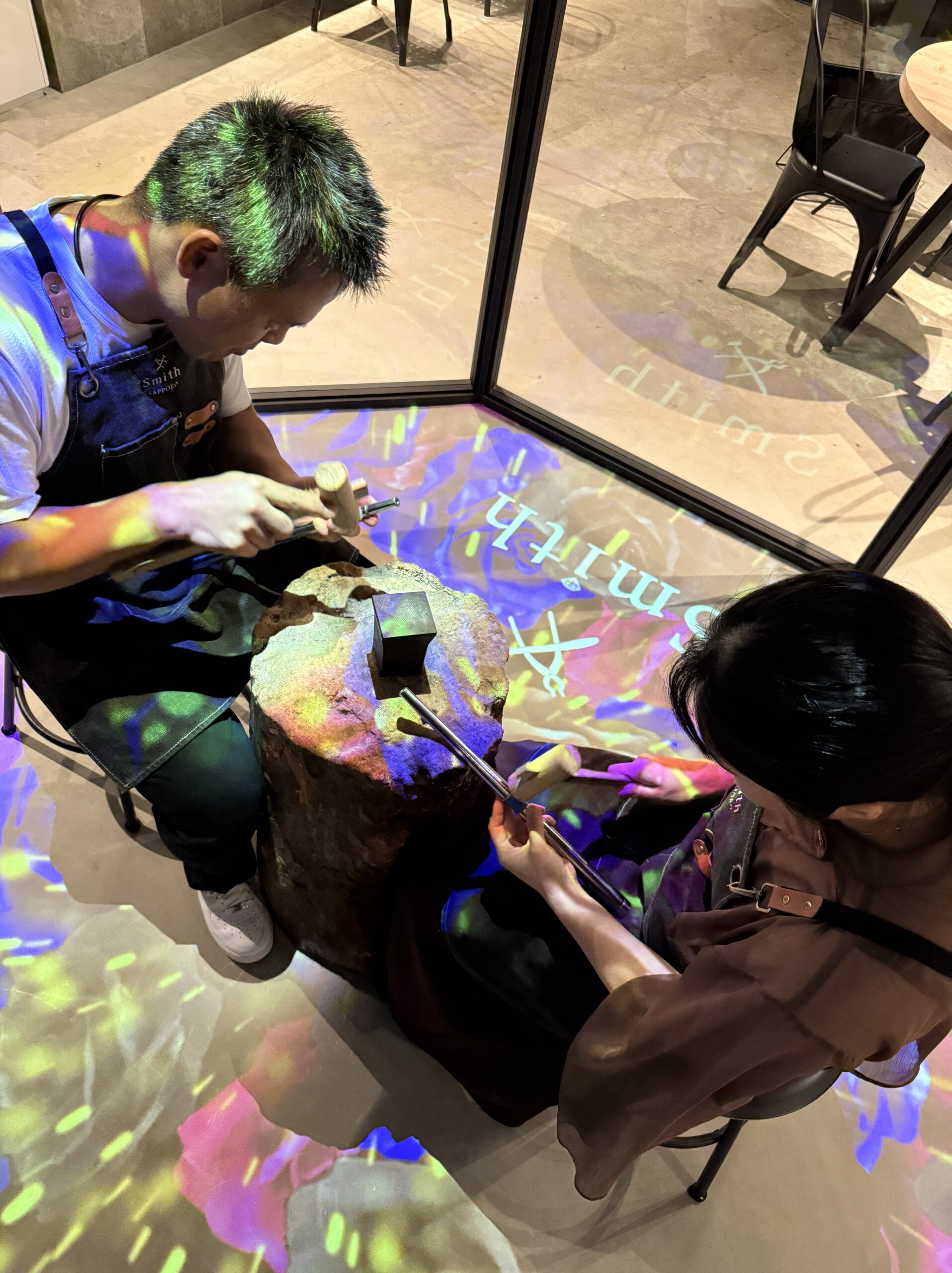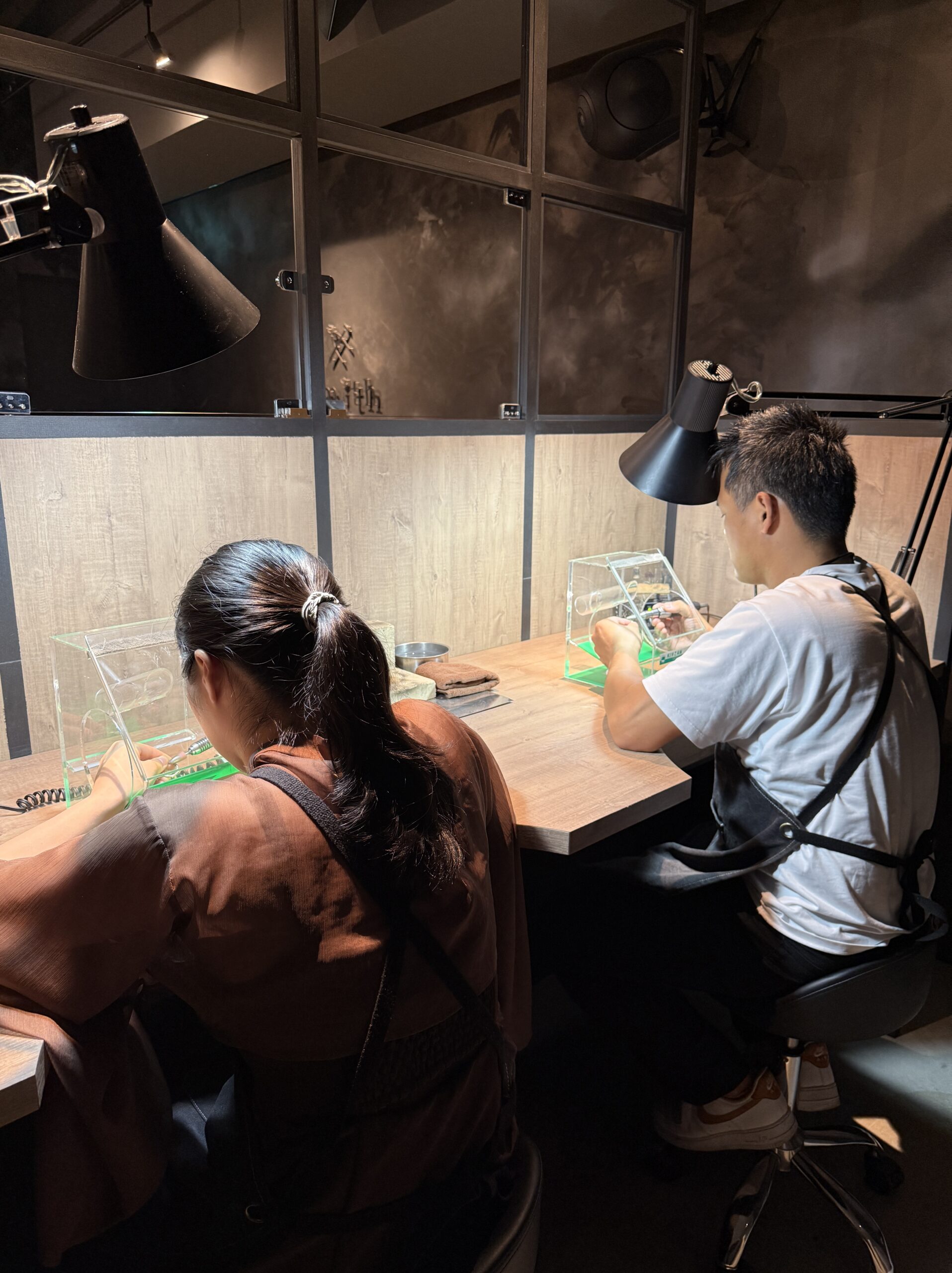 ご主人様はさすがの器用さで工具を使いこなし、奥様は意外にも力強く作業を進めていらっしゃる姿がとても印象的でした。お互いを想いながら丁寧に指輪を作り合うお二人の姿に、スタッフ一同も温かい気持ちで見守らせていただきました。