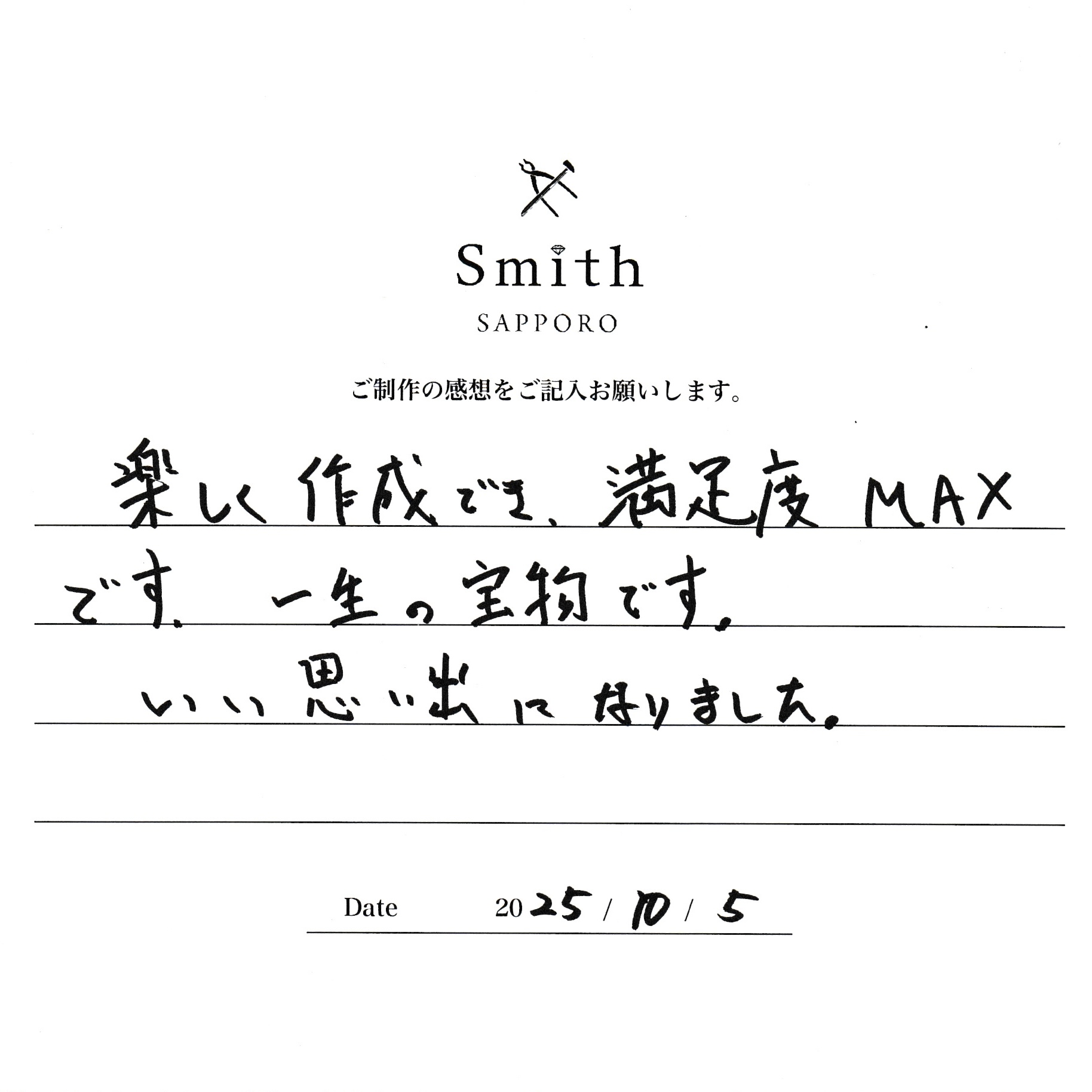 この度は手作り結婚指輪のご制作にお越しいただき、誠にありがとうございました。