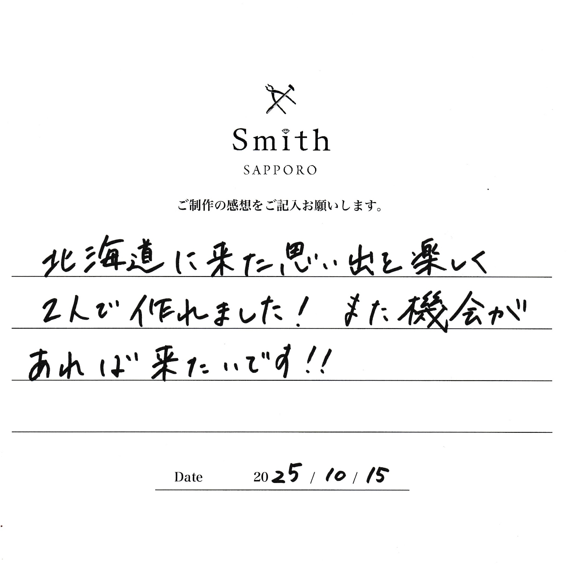 M様【北海道に来た思い出を楽しく2人で作れました】
