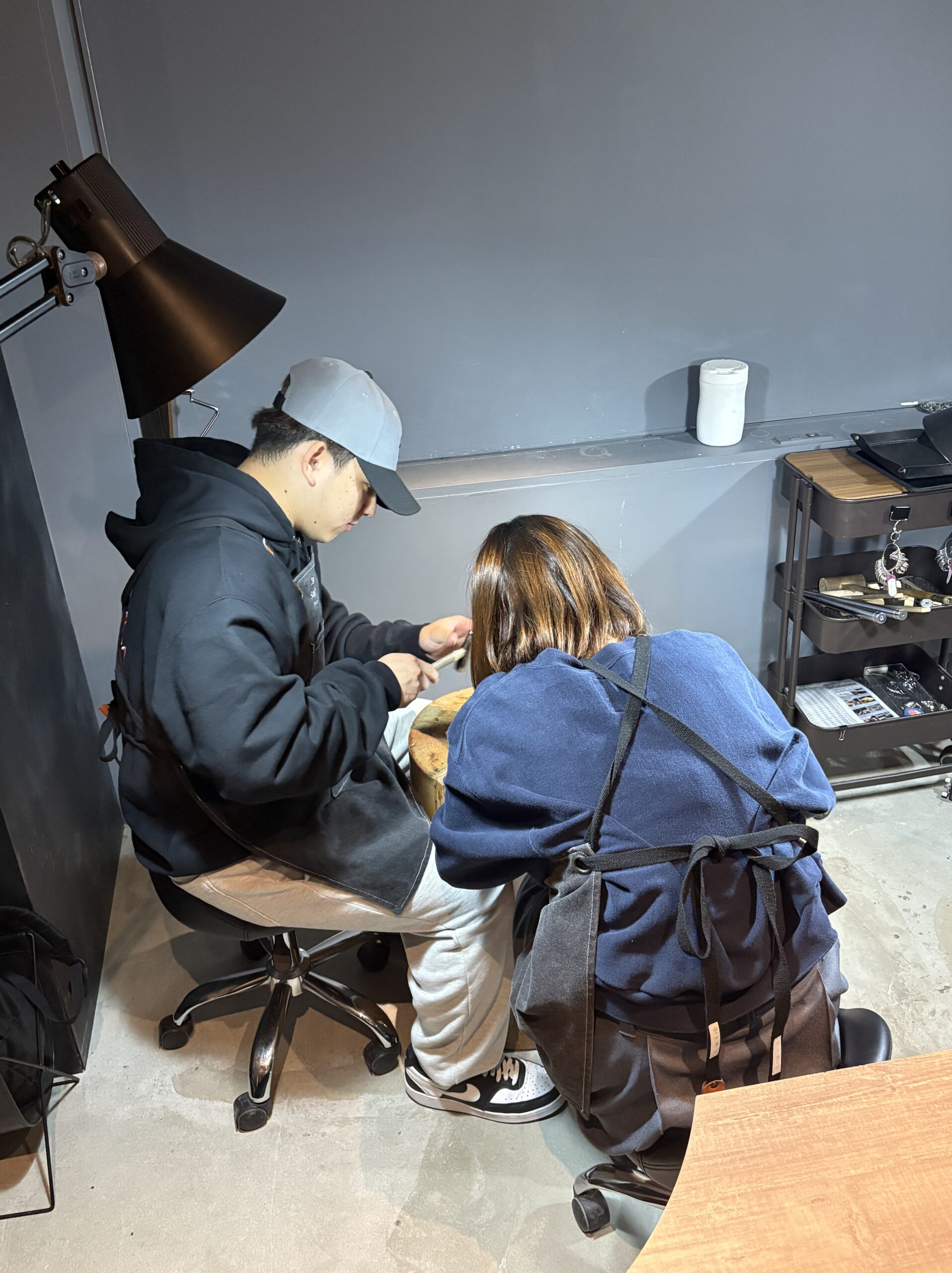明るく全てを楽しむお二人の姿にとても癒されました。お二人の個性が光る、お揃いのハンマー模様のネックレス、とても素敵な仕上がりでした!