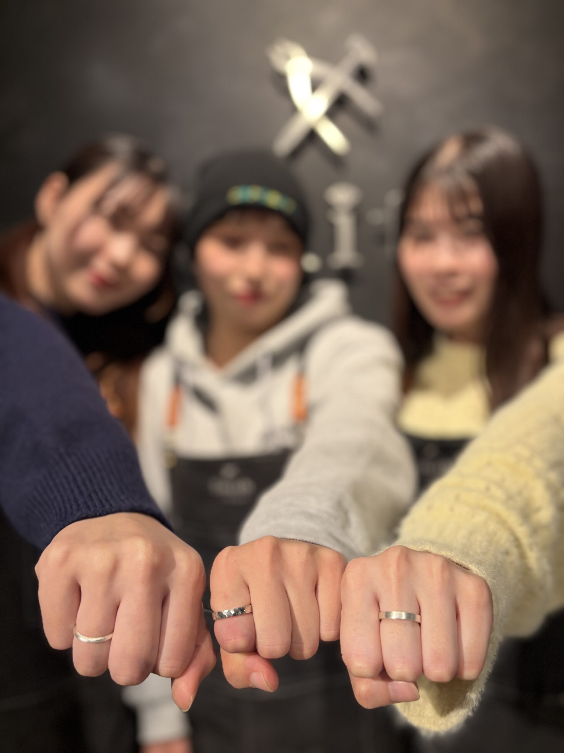 お互いの作品を褒め合いながら仕上げたリングは、きっと素敵な思い出のひとつになったことと思います。これからも変わらず仲良く、世界に一つだけのリングと共に素敵な時間を重ねてくださいね。