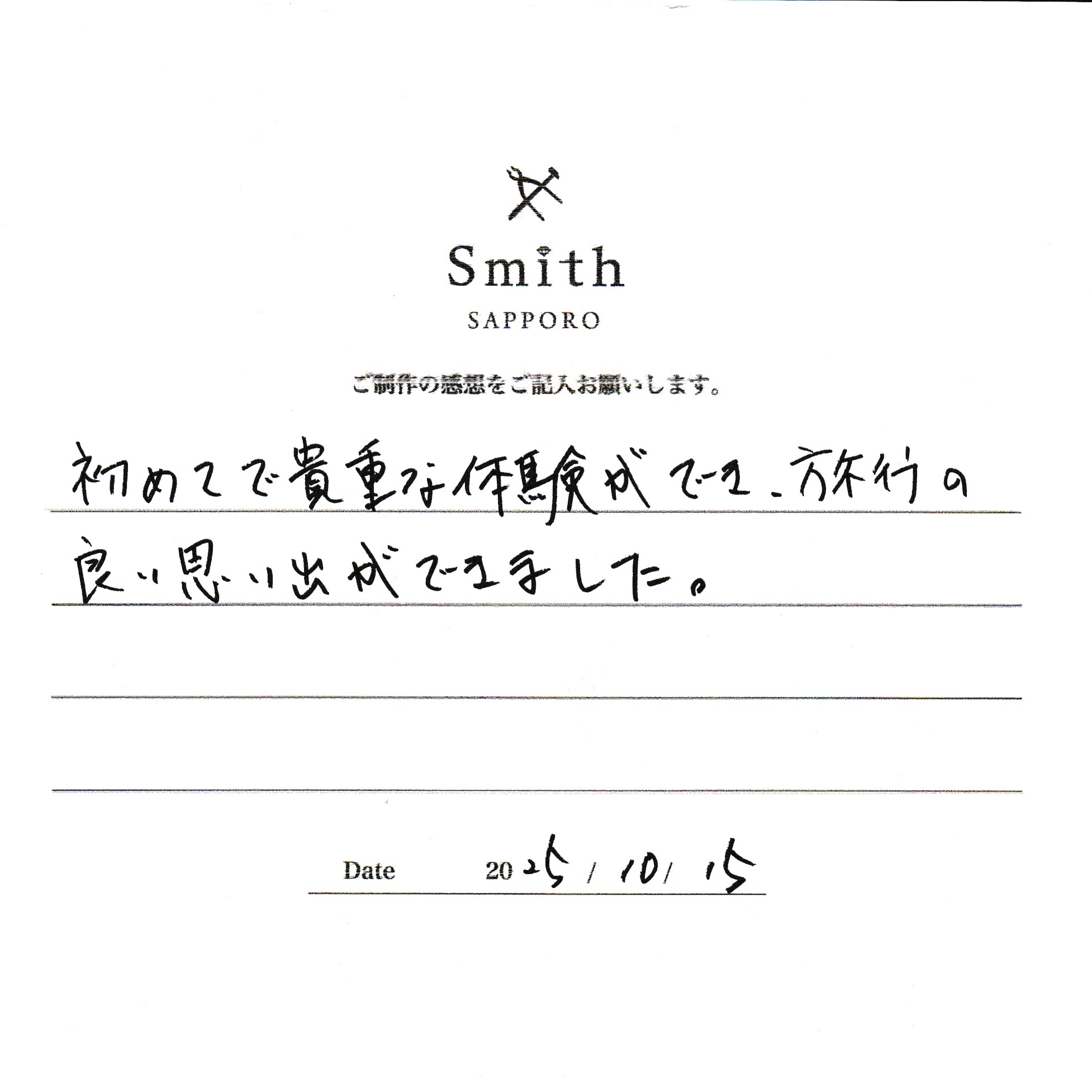初めてで貴重な体験ができ、旅行の良い思い出ができました。