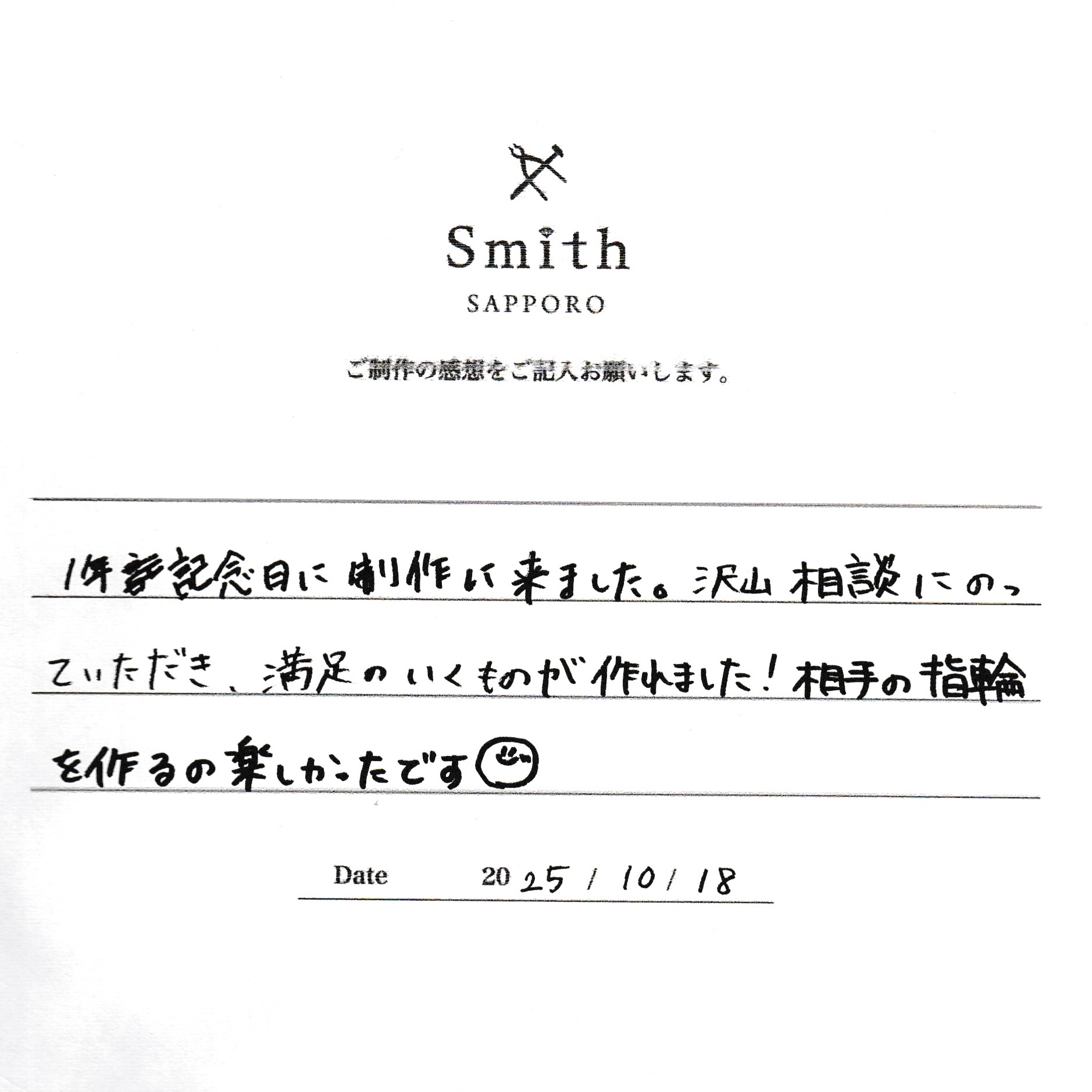 本日は数あるお店の中から大切なペアリングご制作に当店をお選びいただきありがとうございます。