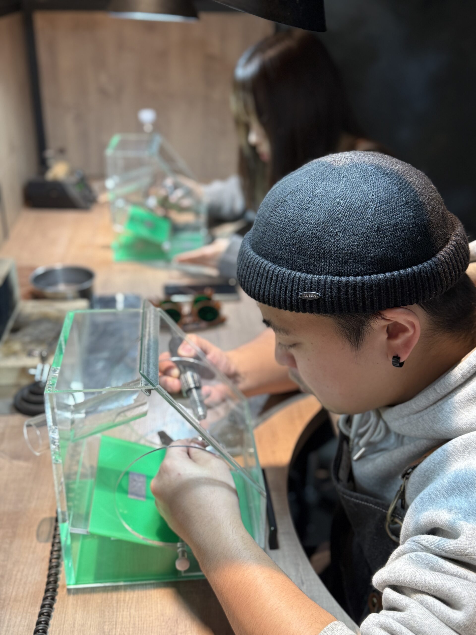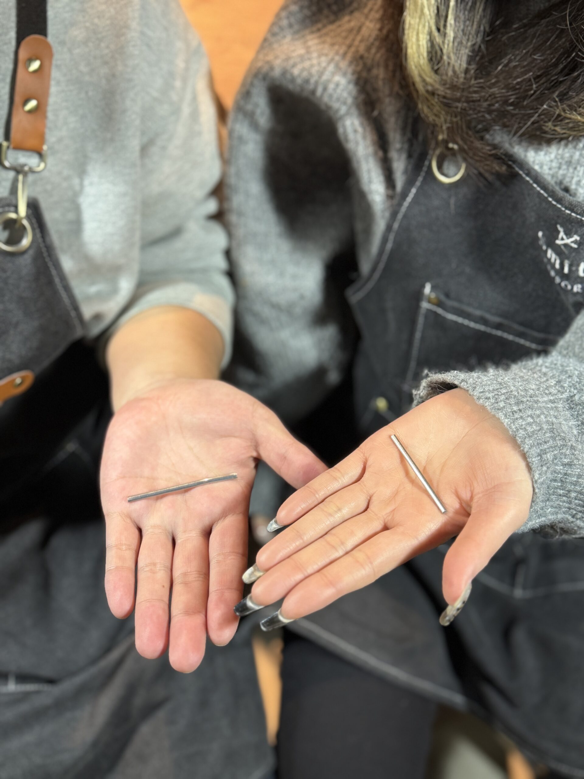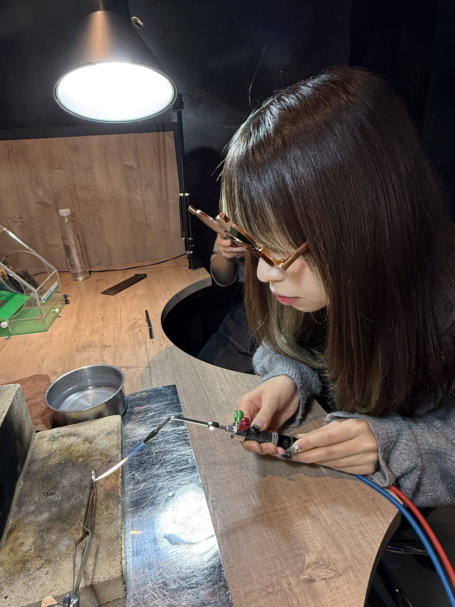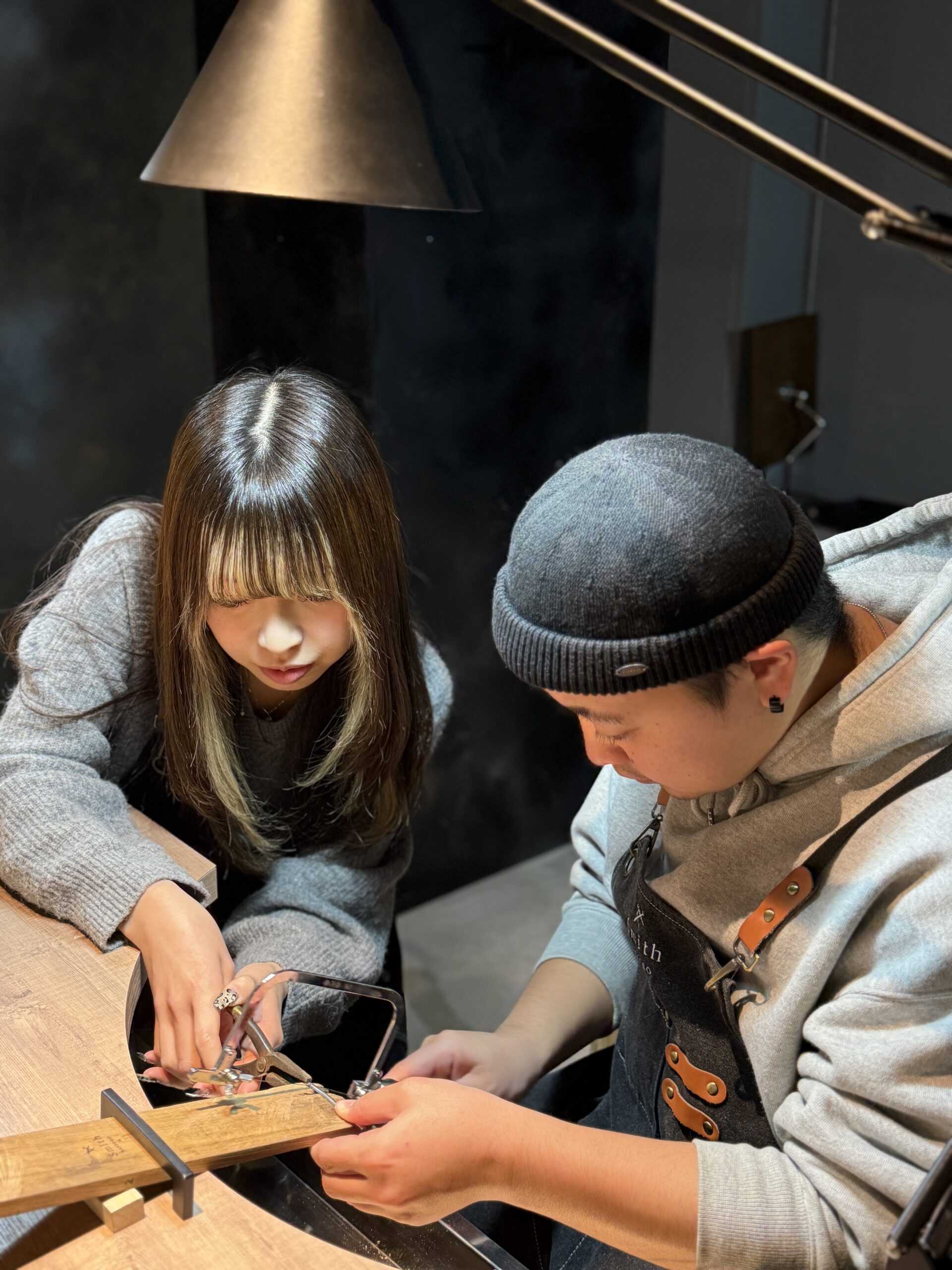 指輪を曲げる作業や、金属を叩いて伸ばす工程など、大変な部分もあったかと思いますが、お互いに声を掛け合い、助け合いながら進めていらっしゃるお姿がとても印象的でした。