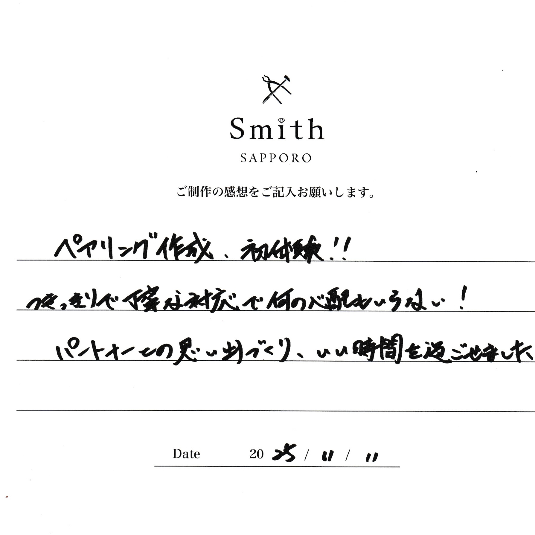 この度は、手作り結婚指輪の制作にご来店いただき、誠にありがとうございました。