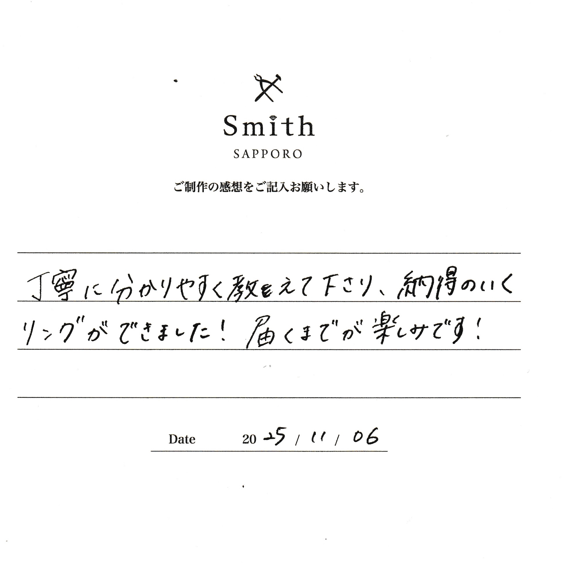 工房Smith札幌でお客様がご制作された指輪をご紹介