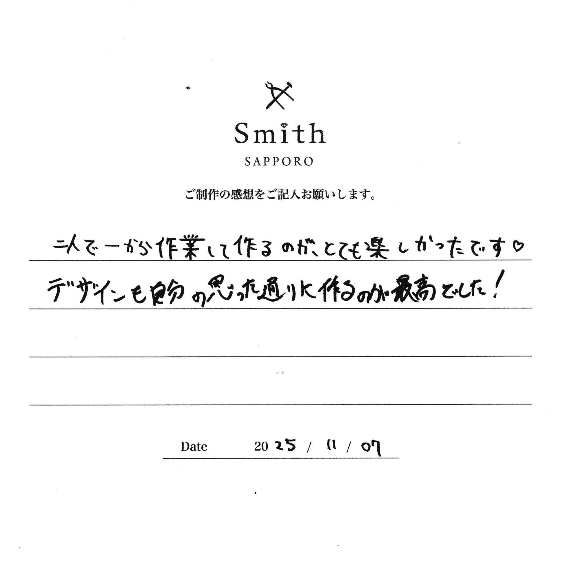 工房Smith札幌でお客様がご制作された指輪をご紹介