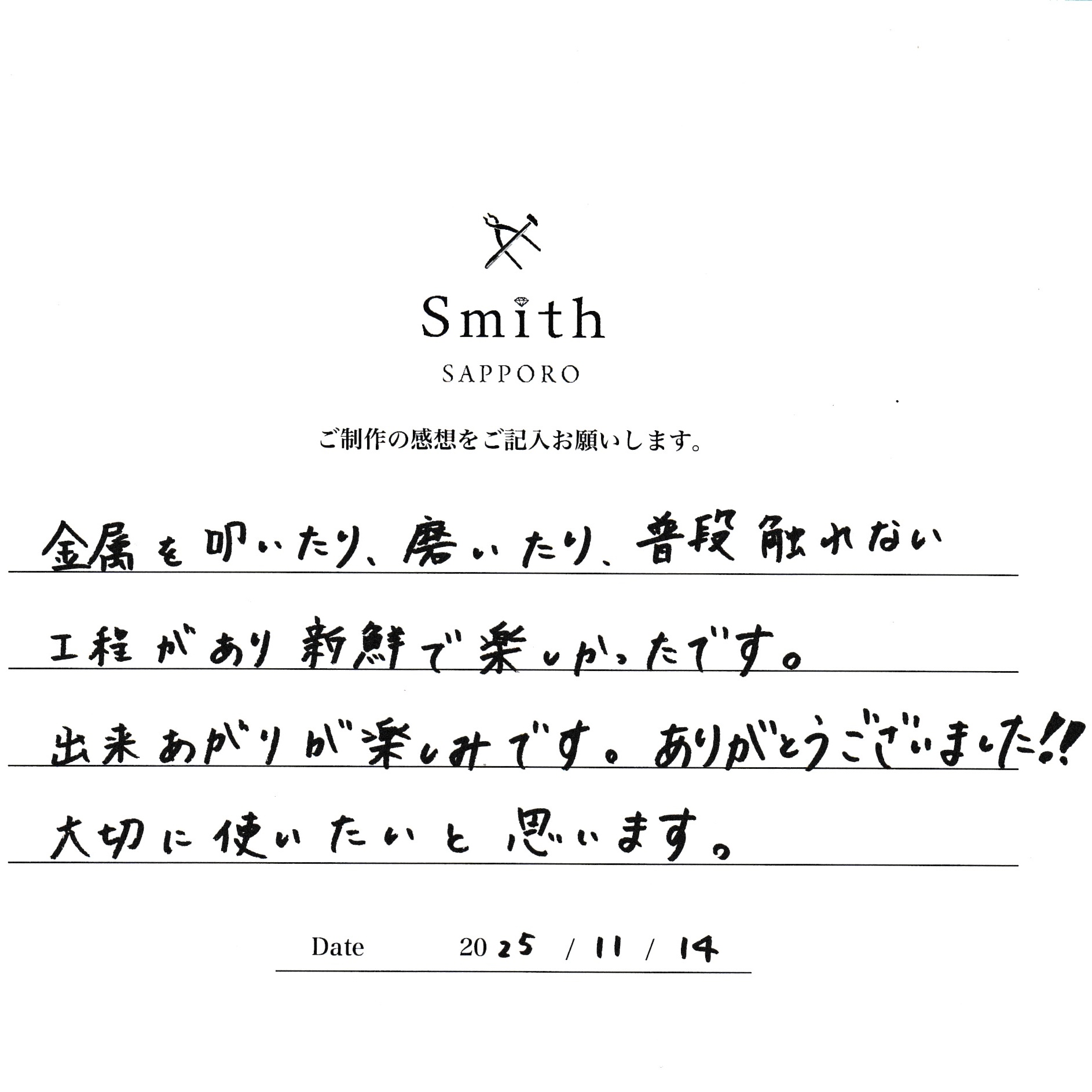 金属を叩いたり、磨いたり、普段触れない工程があり新鮮で楽しかったです。