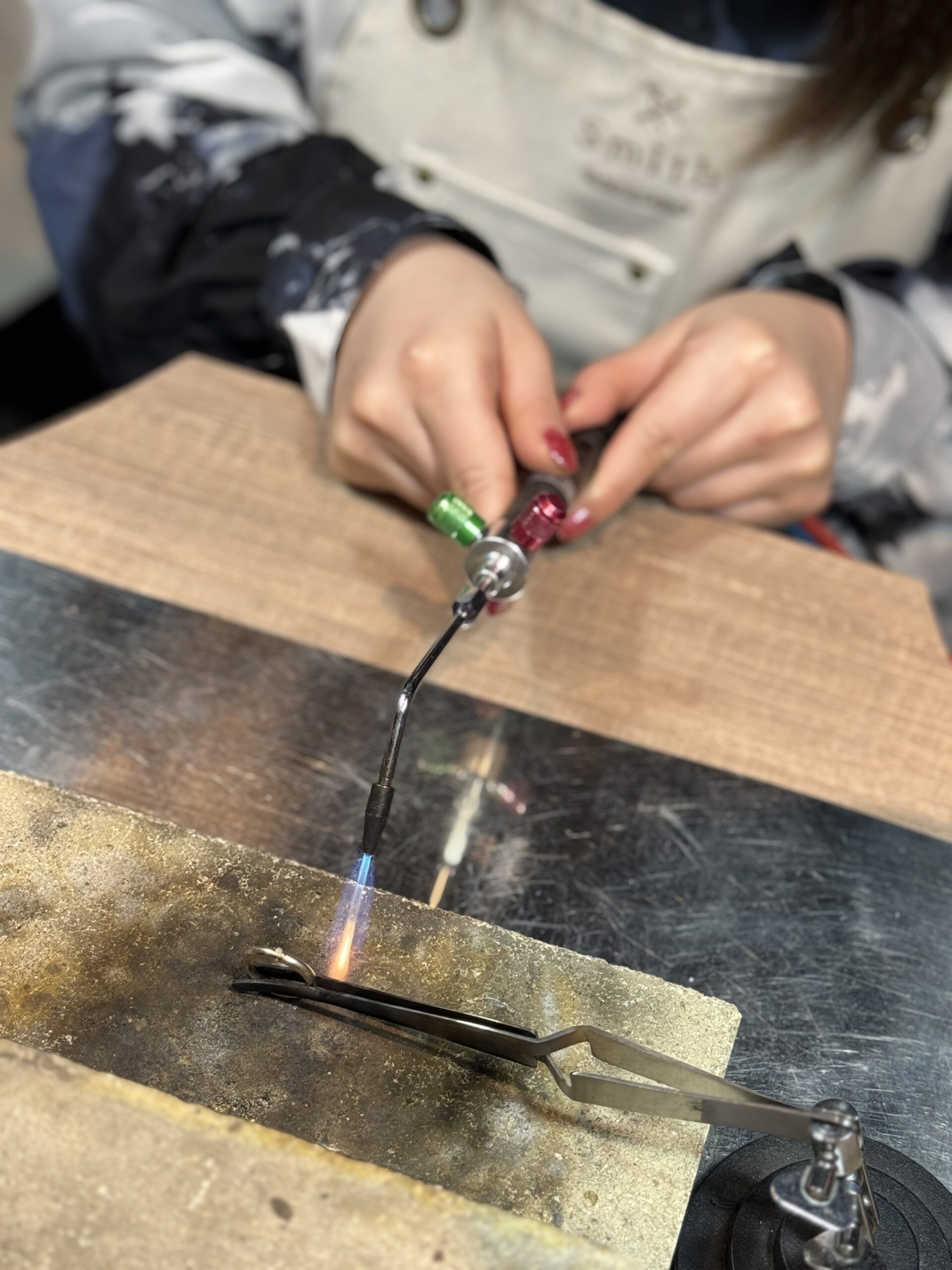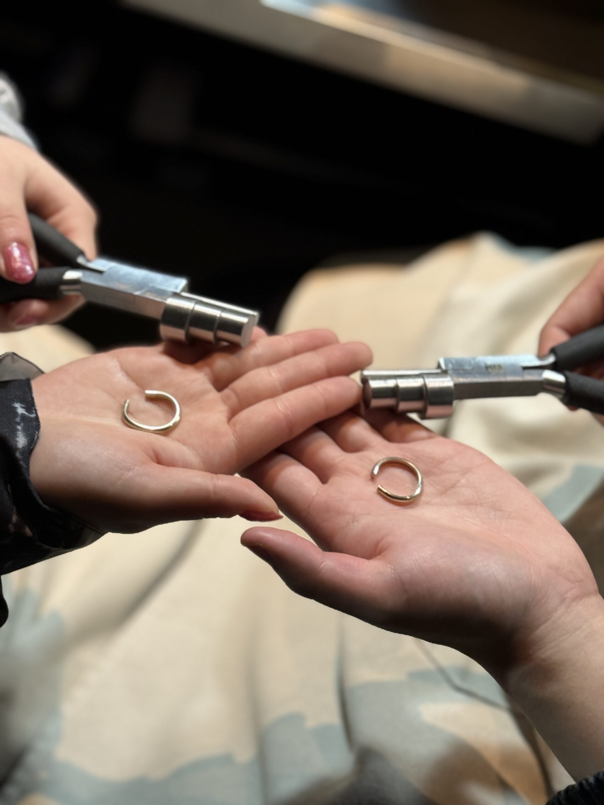 最初は少し緊張されているご様子でしたが、作業が進むにつれ笑顔が増え、楽しそうに指輪づくりに取り組んでくださる姿がとても印象的でした。