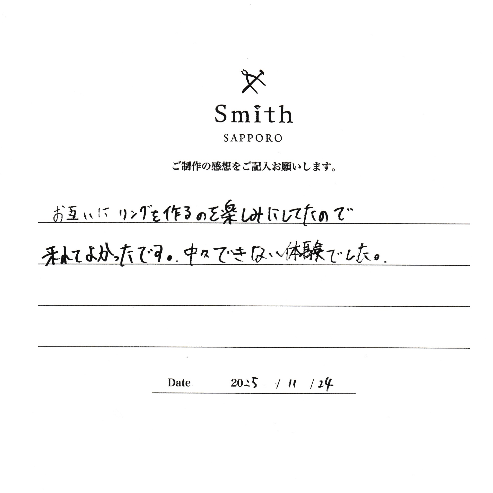 お互いにリングを作るのを楽しみにしていたので来れてよかったです。