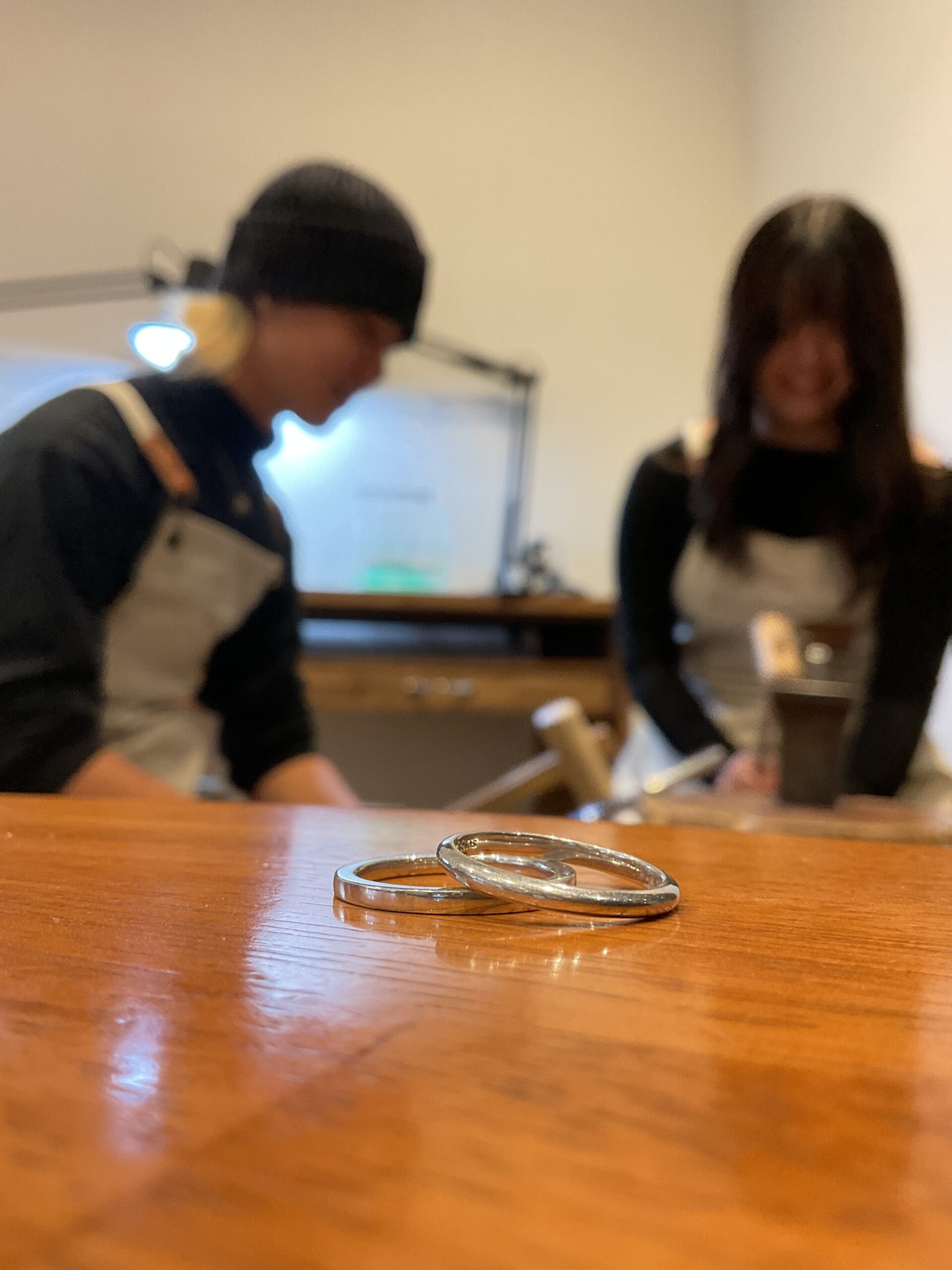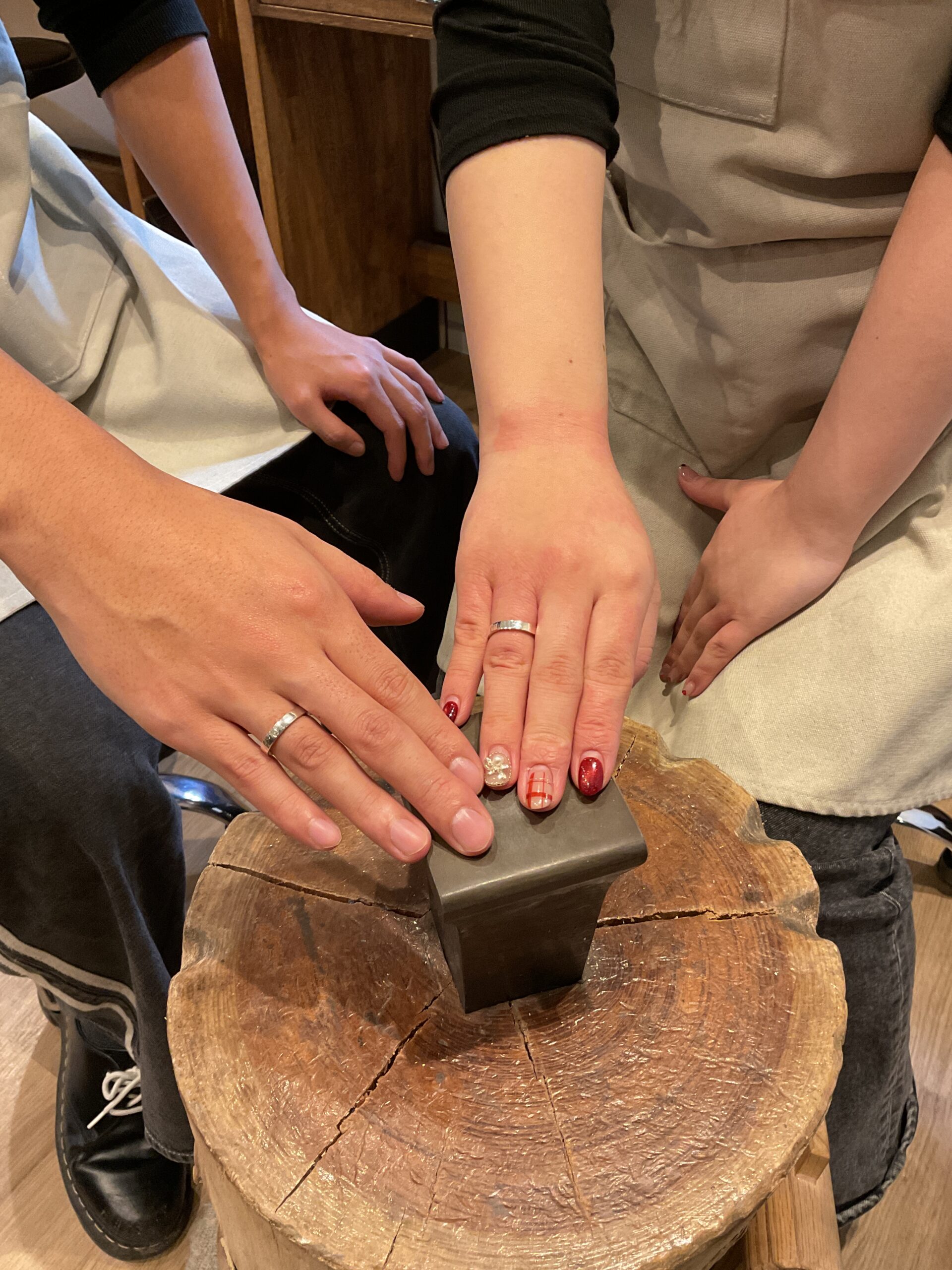 基本の形は3mmの平打ちリングに、テクスチャーは鏡面をお選びいただきました。