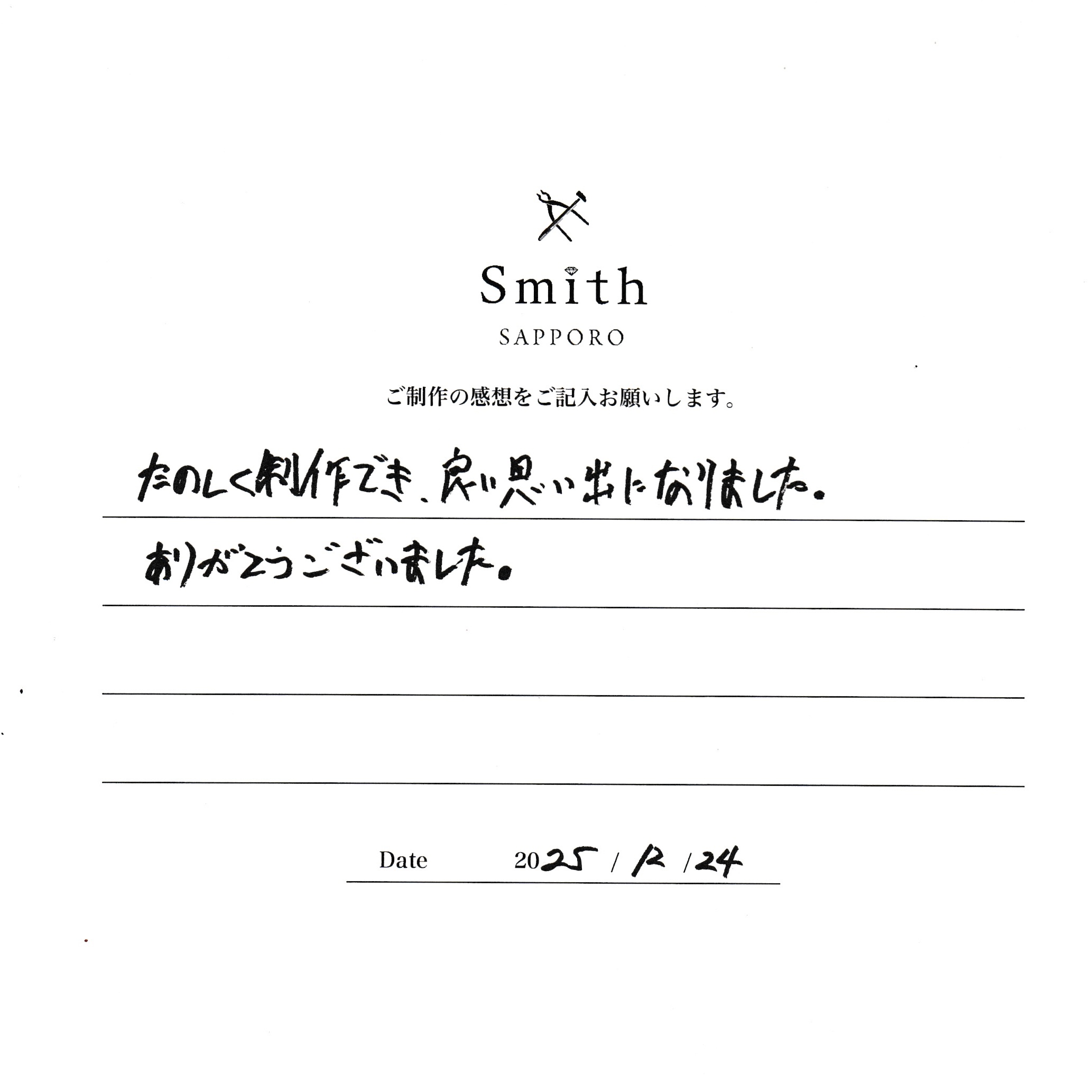 この度は、道外からのご旅行の思い出作りとして当店をお選びいただき、大変嬉しく思います。