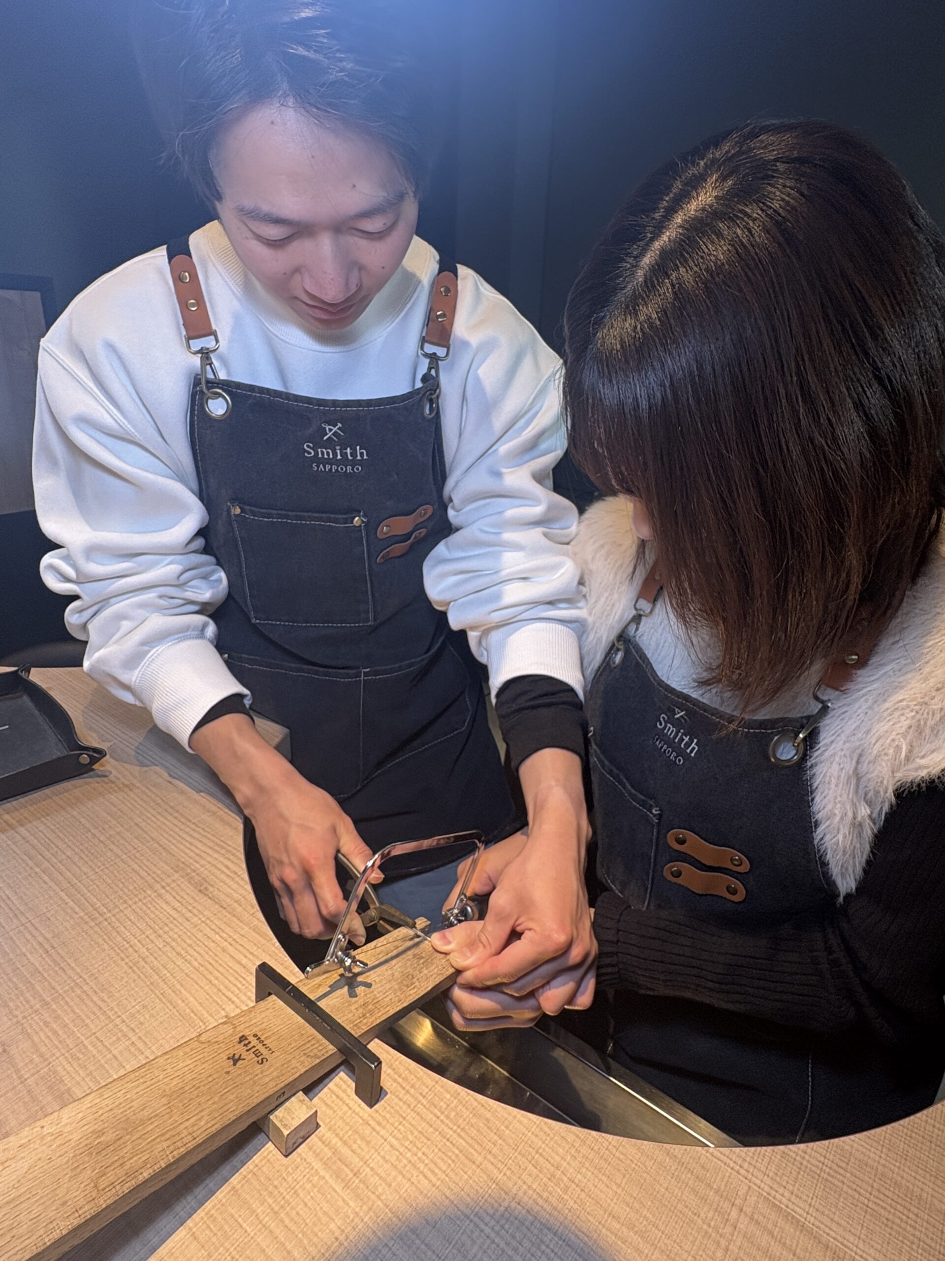 一つ一つの工程を確実にこなされ、終始話し合いながら進める仲の良いお二人の姿がとても印象的でした。完成した指輪は、お二人の誠実さがそのまま表れた、スタイリッシュでとても美しい仕上がりに。