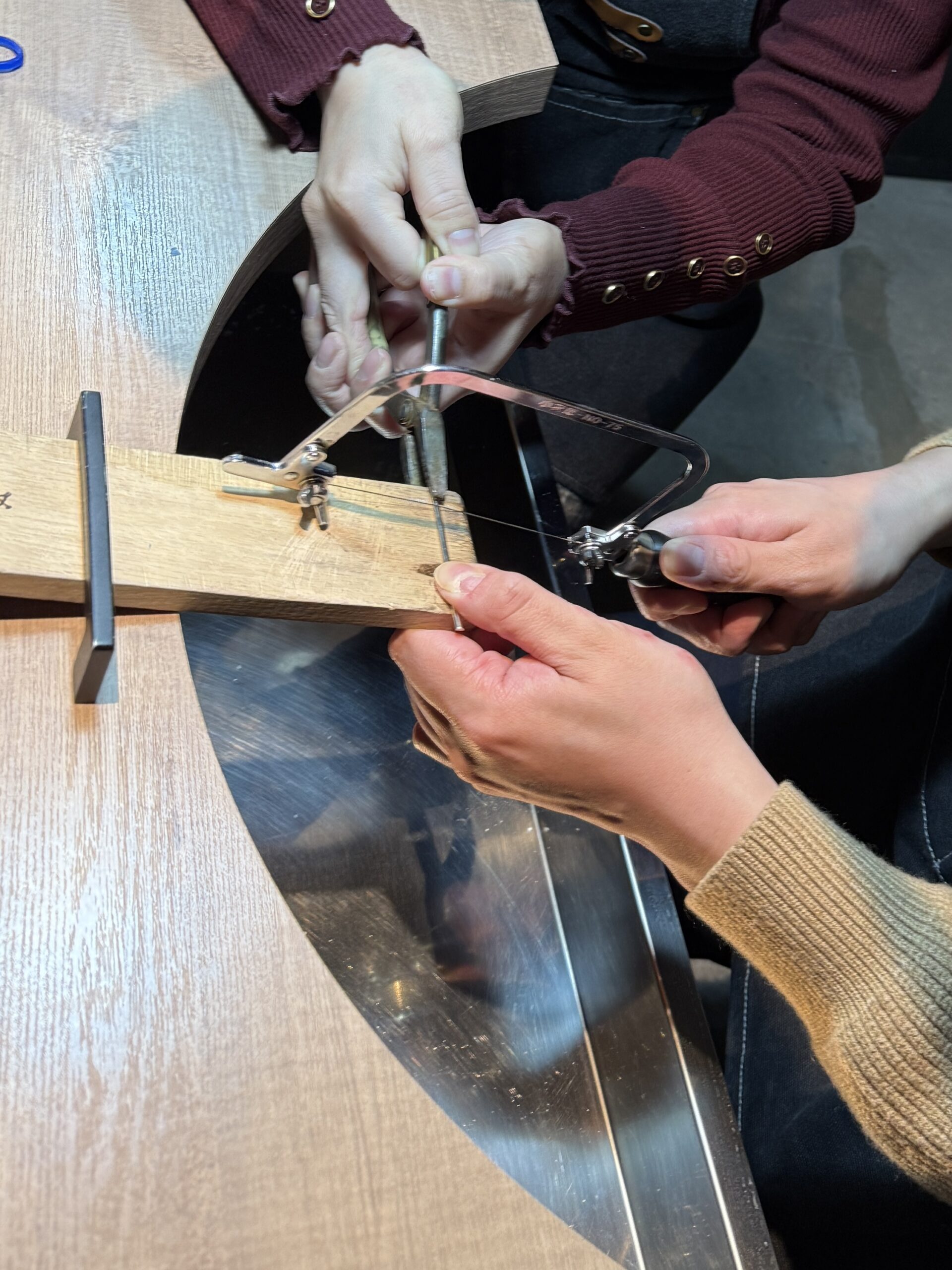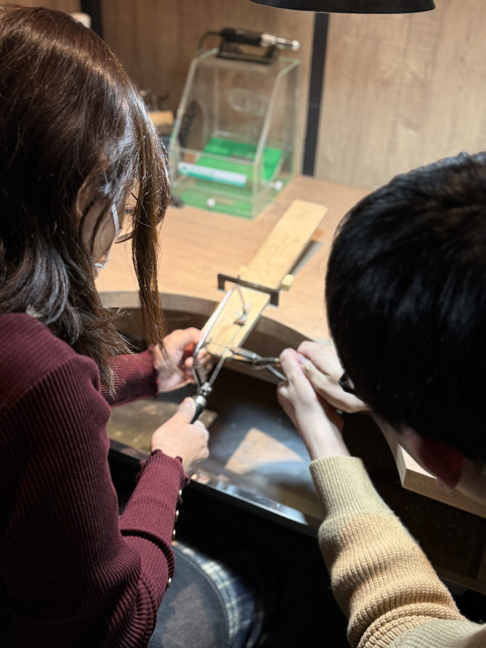 プロポーズの想いが込められた婚約指輪、そしてこれからの人生を共に歩まれる結婚指輪を、お二人で一つひとつ丁寧に制作されるお姿は、とても印象的で、温かな時間が工房に流れておりました。