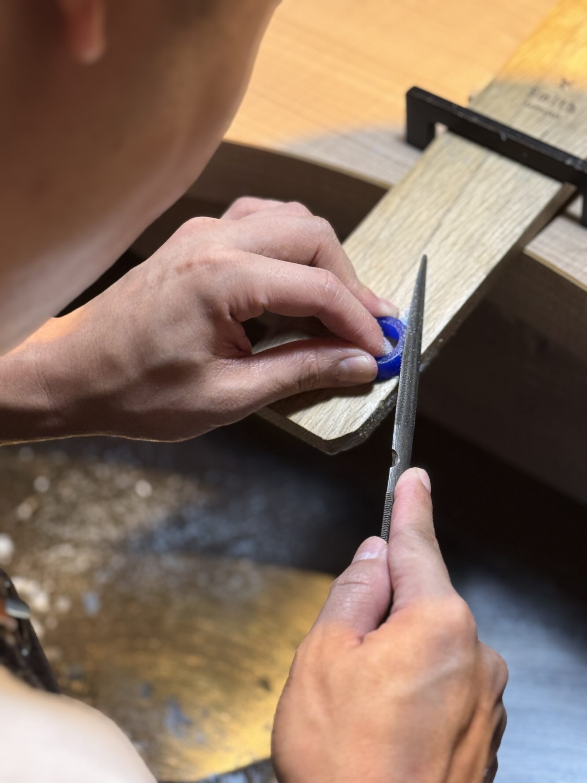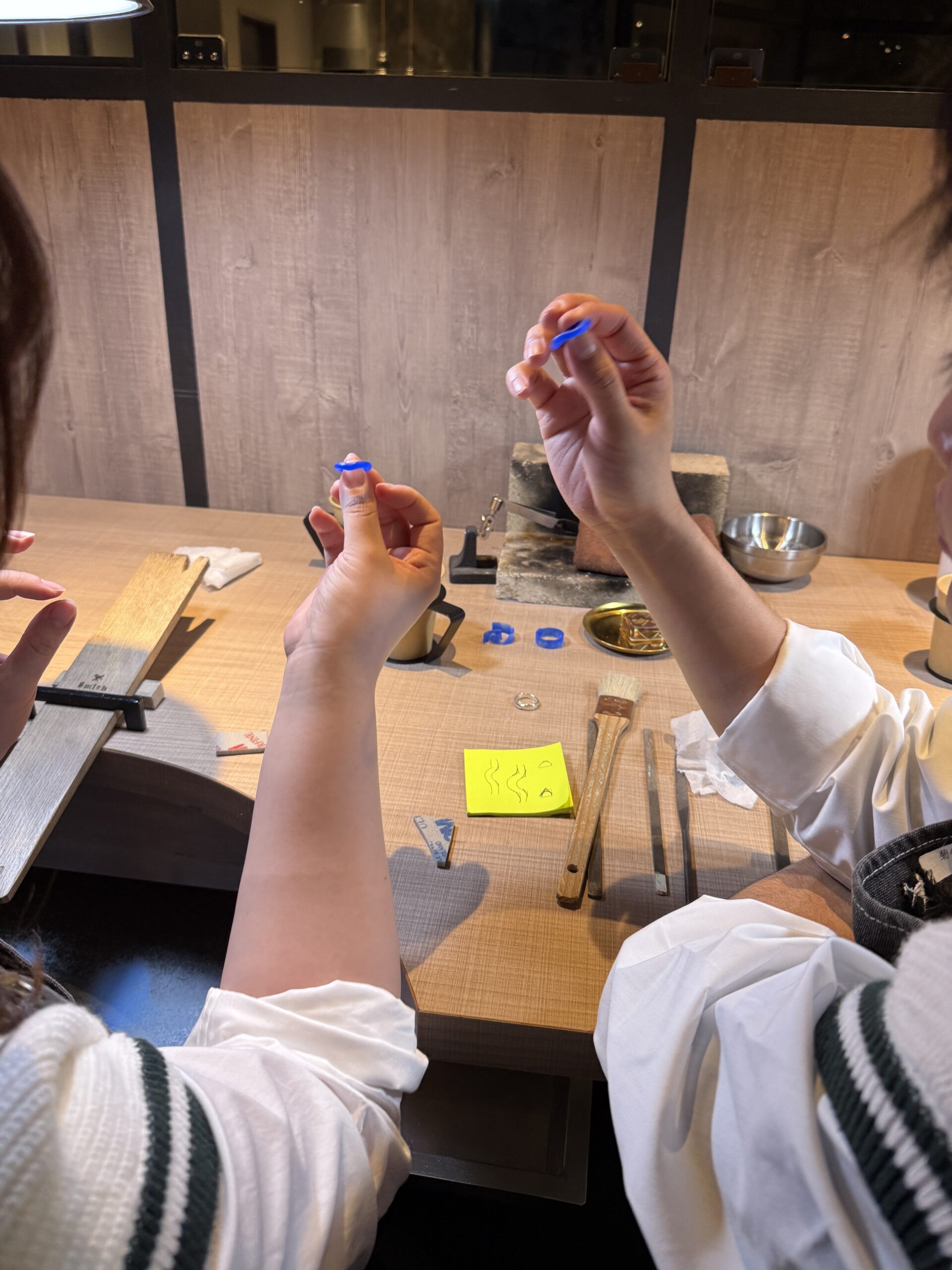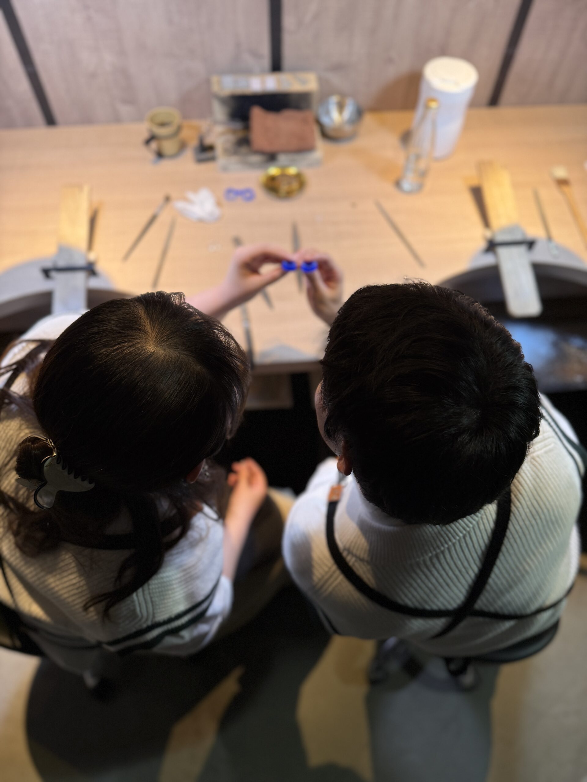 ご主人が奥様のリングを丁寧に仕上げ、確認し合いながら進める様子から、お二人の思いやりがたくさん伝わってきました。