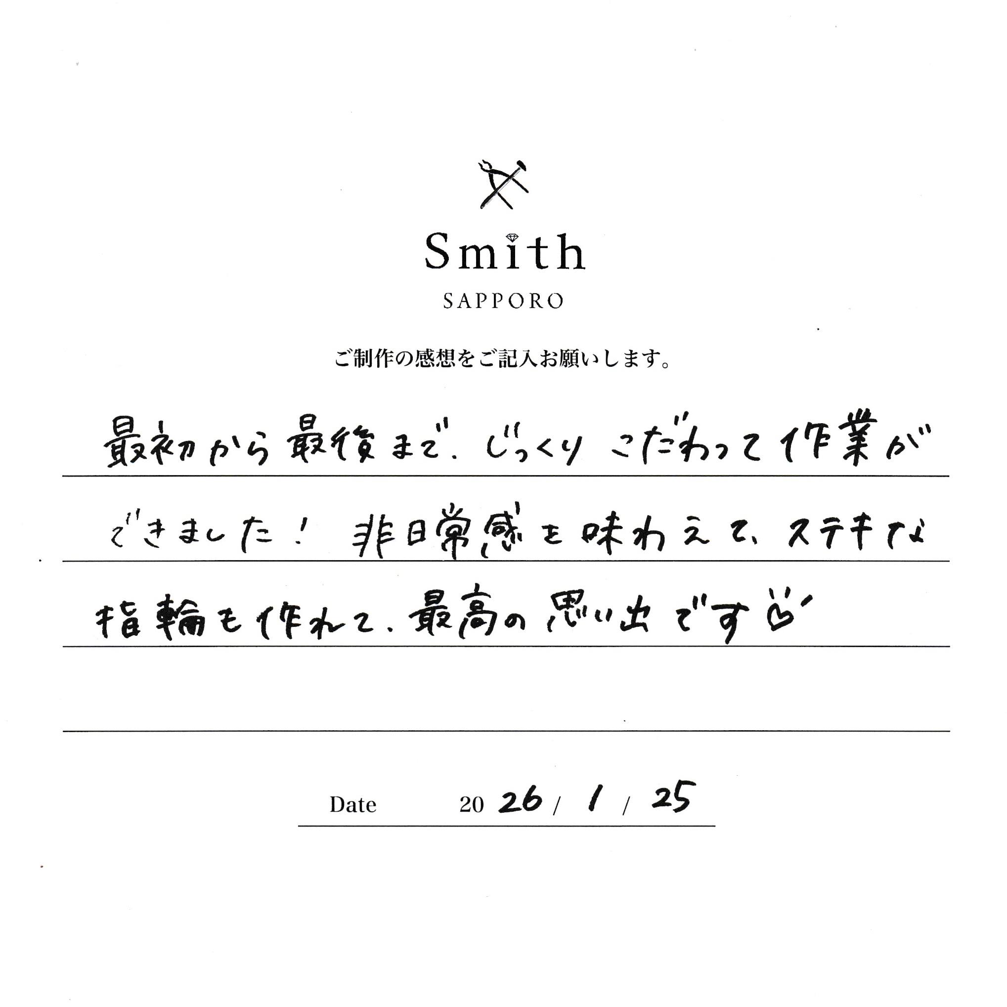 工房Smith札幌本店を結婚指輪制作の場として選んでいただき、誠にありがとうございます!