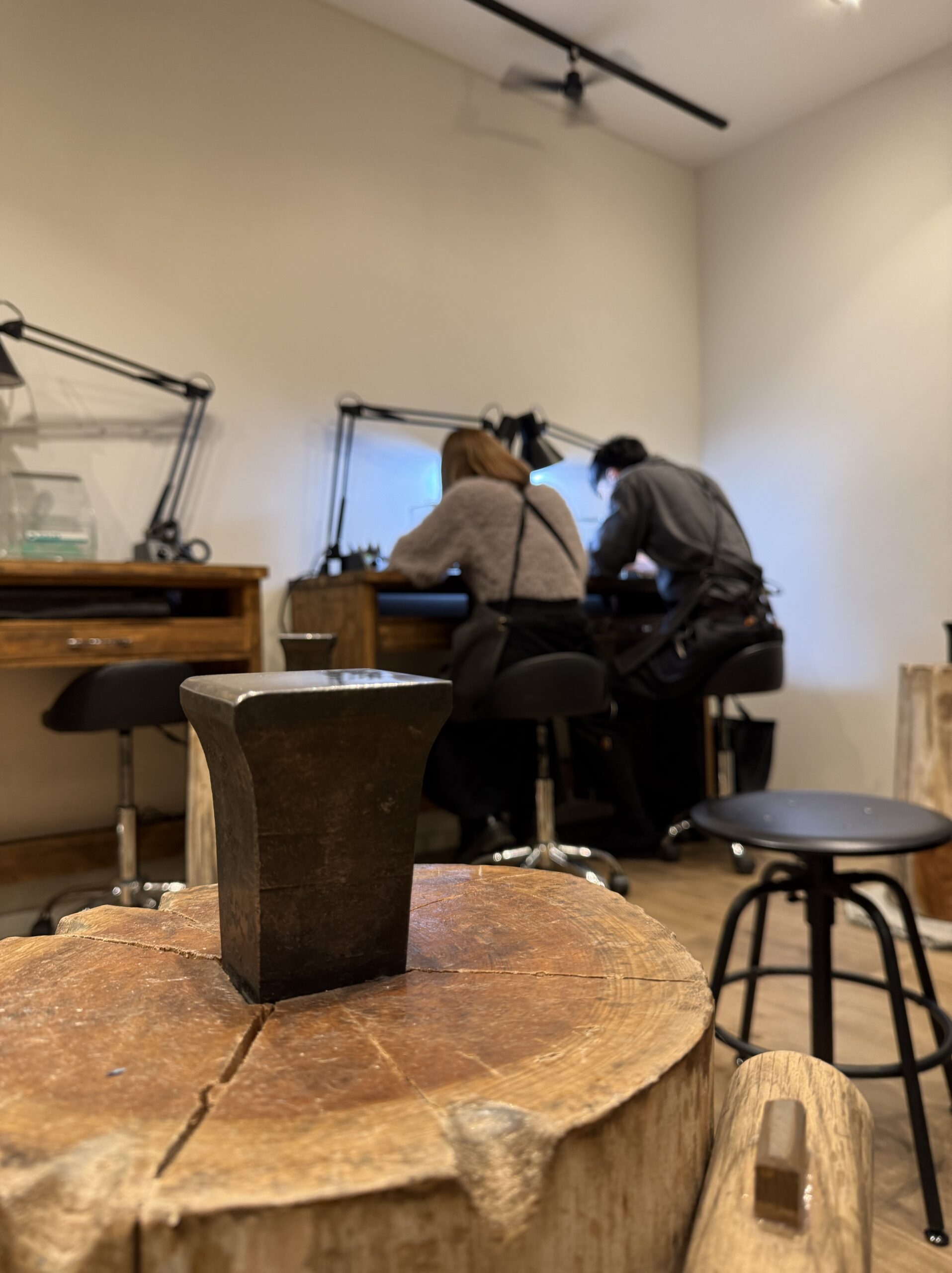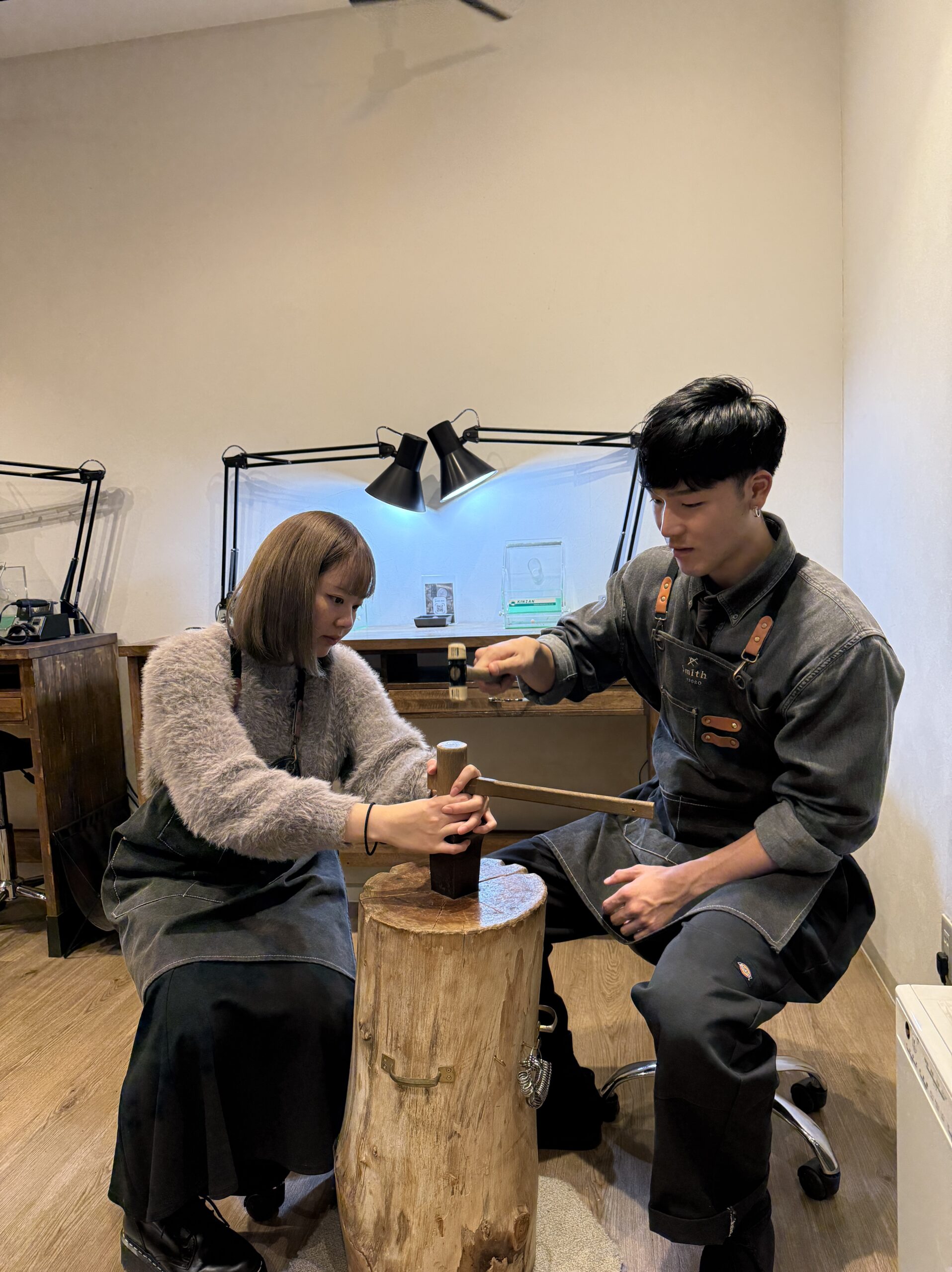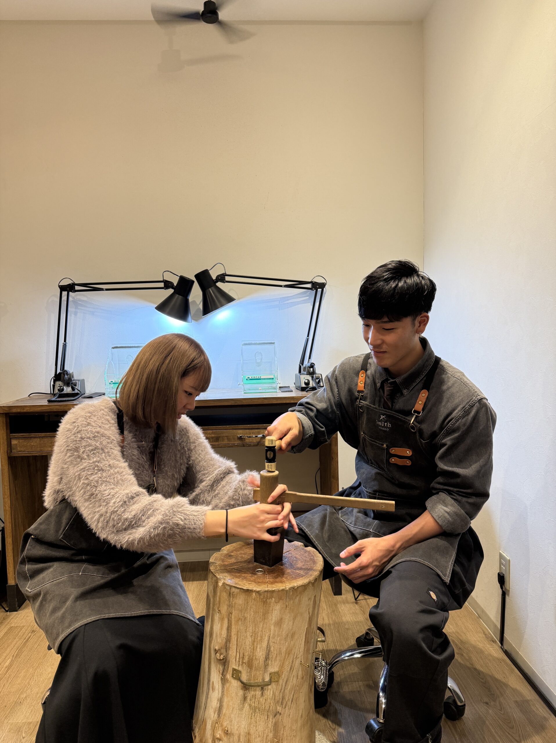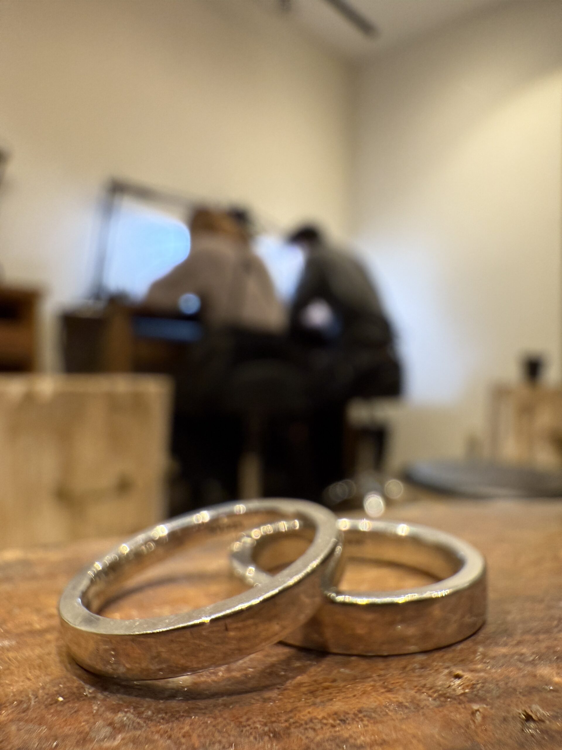 最初は少し緊張されているご様子でしたが、制作が進むにつれて笑顔が増え、おふたりで相談しながら楽しそうに作業されていた姿がとても印象的でした。初めての指輪作りの中で、一つひとつの工程に丁寧に向き合い、真剣に取り組まれていたことが、指輪にもきっと表れていると思います。