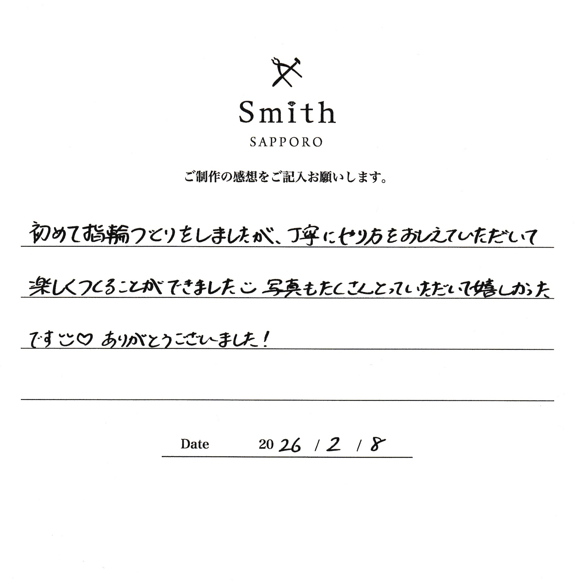 この度はペアリング制作のため、工房Smith京王プラザホテル札幌店にご来店いただき、誠にありがとうございました。