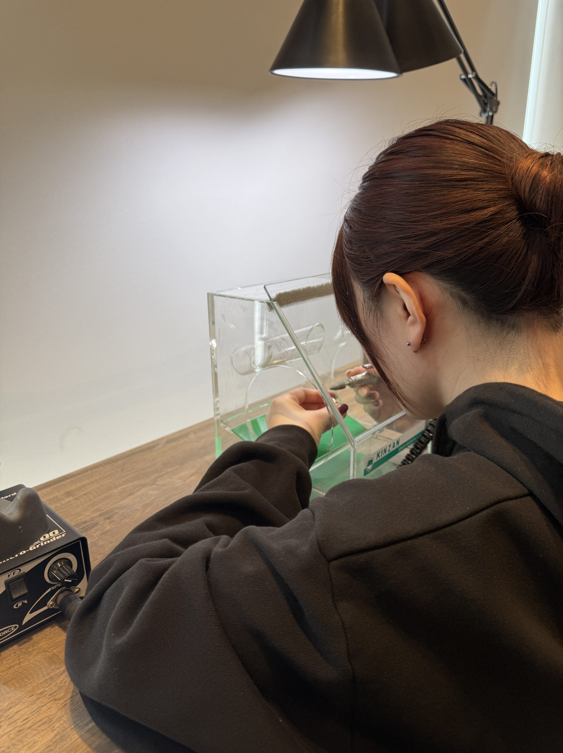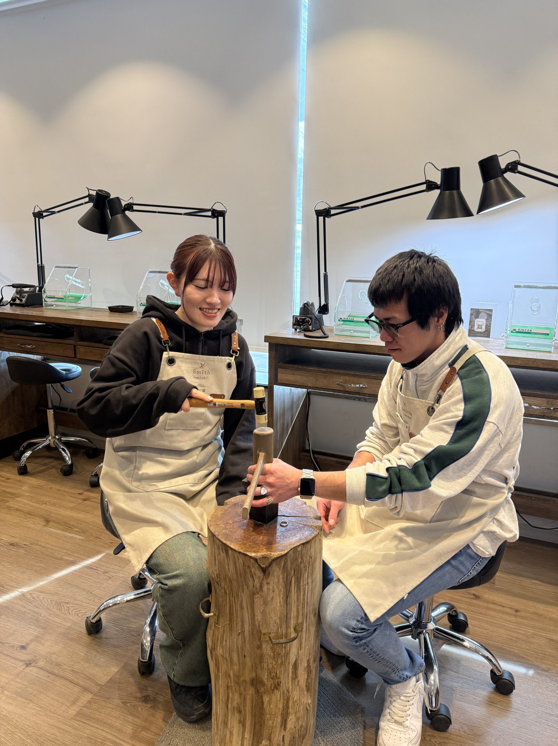 制作中は終始和やかな雰囲気の中、一つひとつの工程に丁寧に取り組んでくださり、指輪作りを楽しまれているご様子が大変印象的でした。
