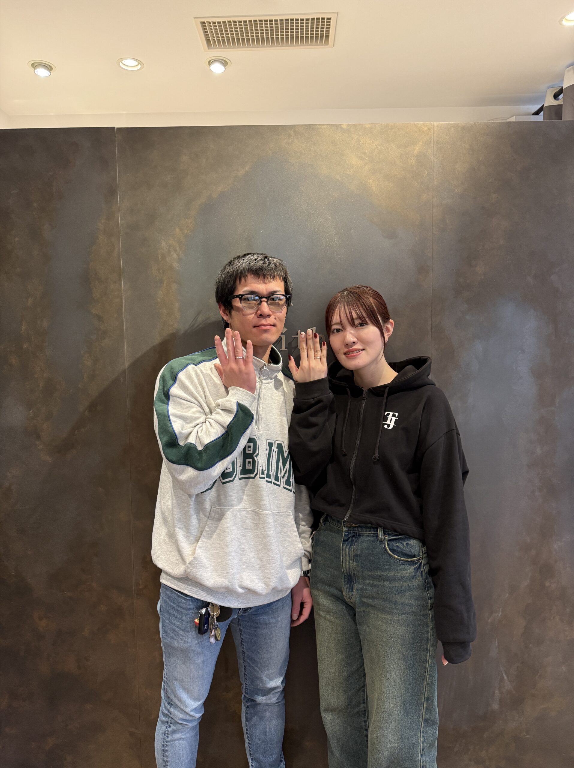 お二人とも3mmの甲丸指輪をお選びいただき、内側には大切な記念日とイニシャルが刻まれています。