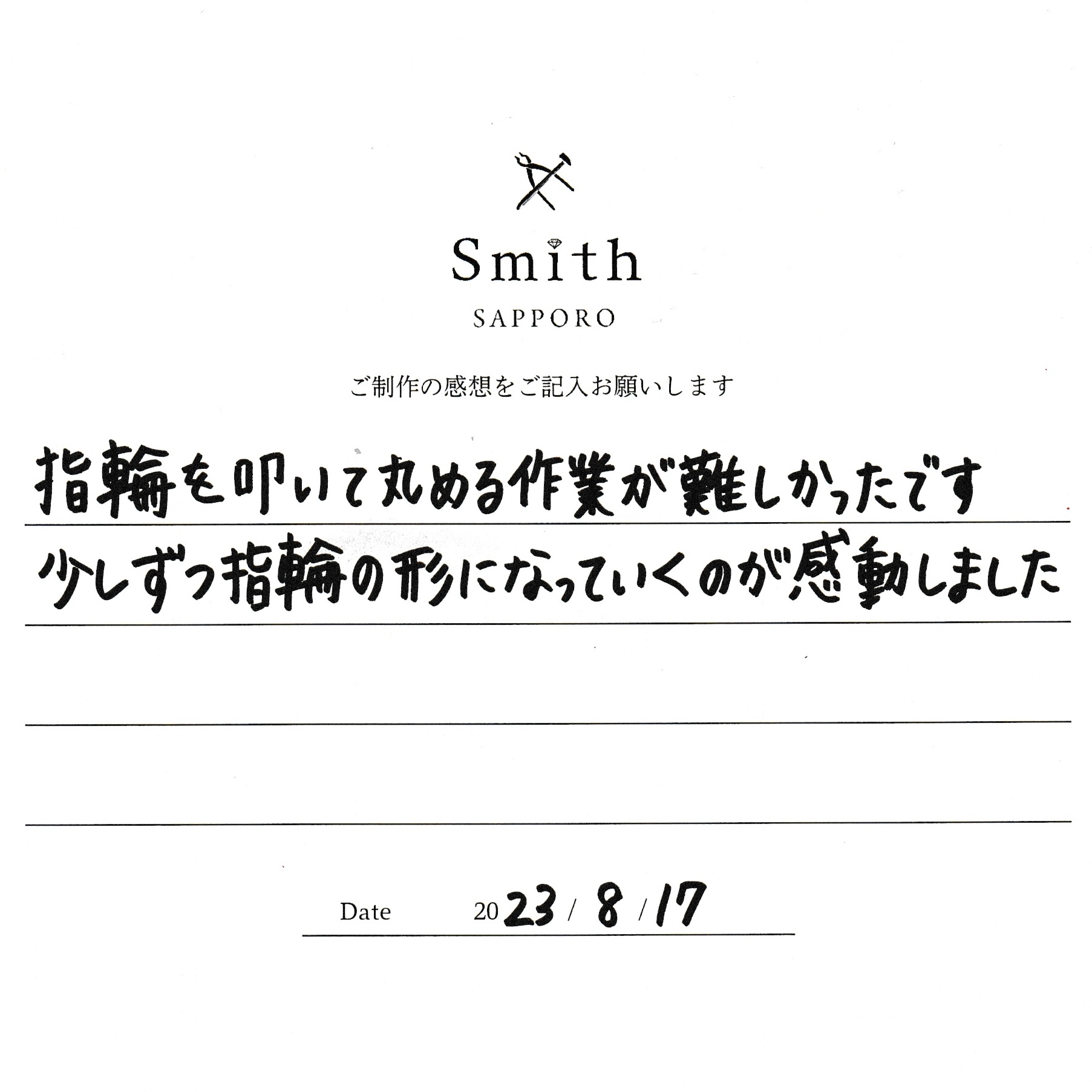 F様【少しずつ指輪の形になっていくのが感動しました。】