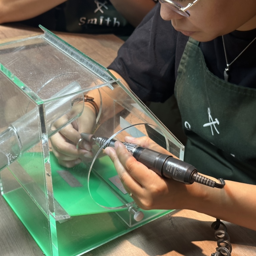 指輪を叩いて丸める作業が難しかったです。
