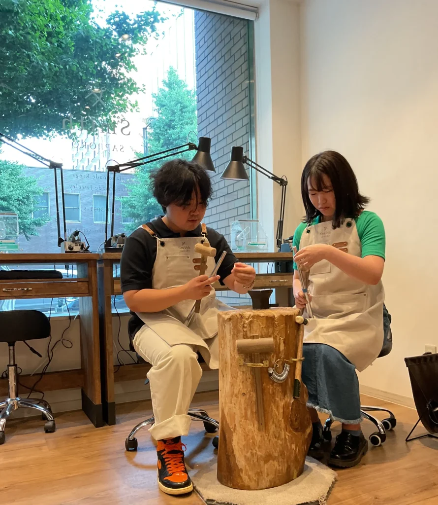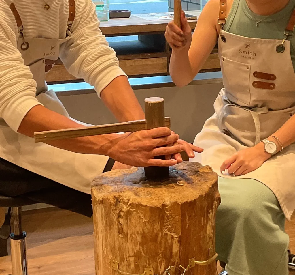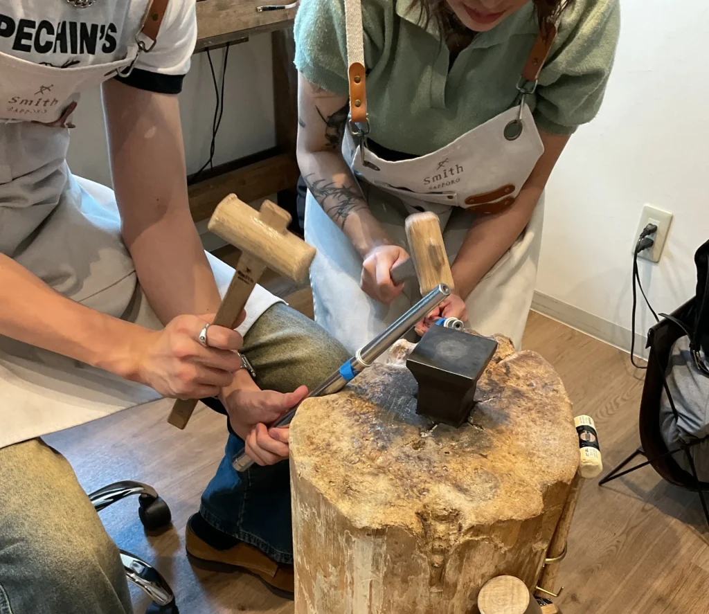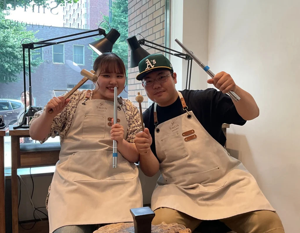 I様・N様【やすりがけもハンマーで伸ばす作業も本格的に思えて新鮮だった】